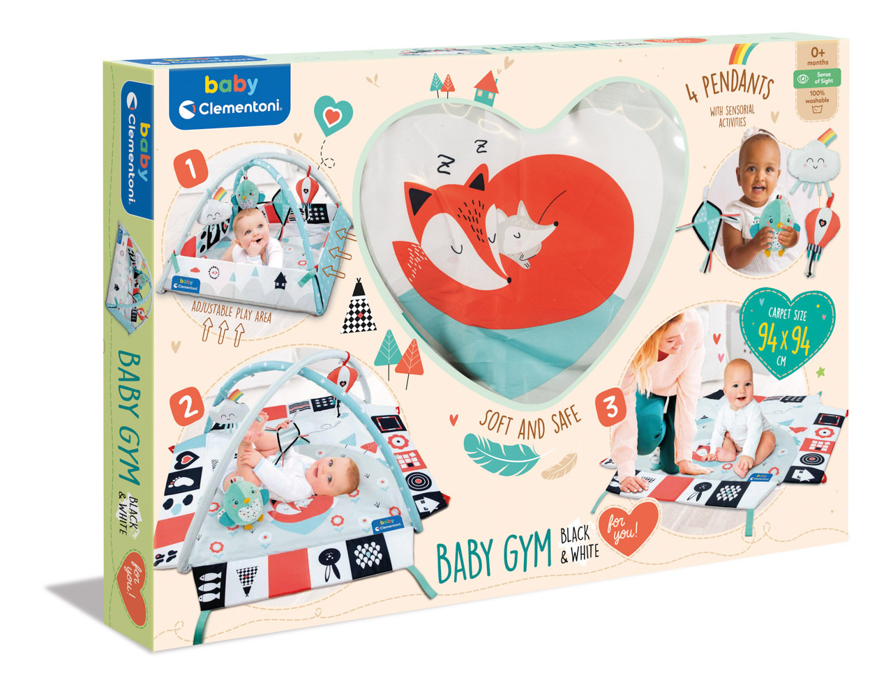 Clementoni Clemmy baby - dětská hrací deka s hrazdou černo-bílá