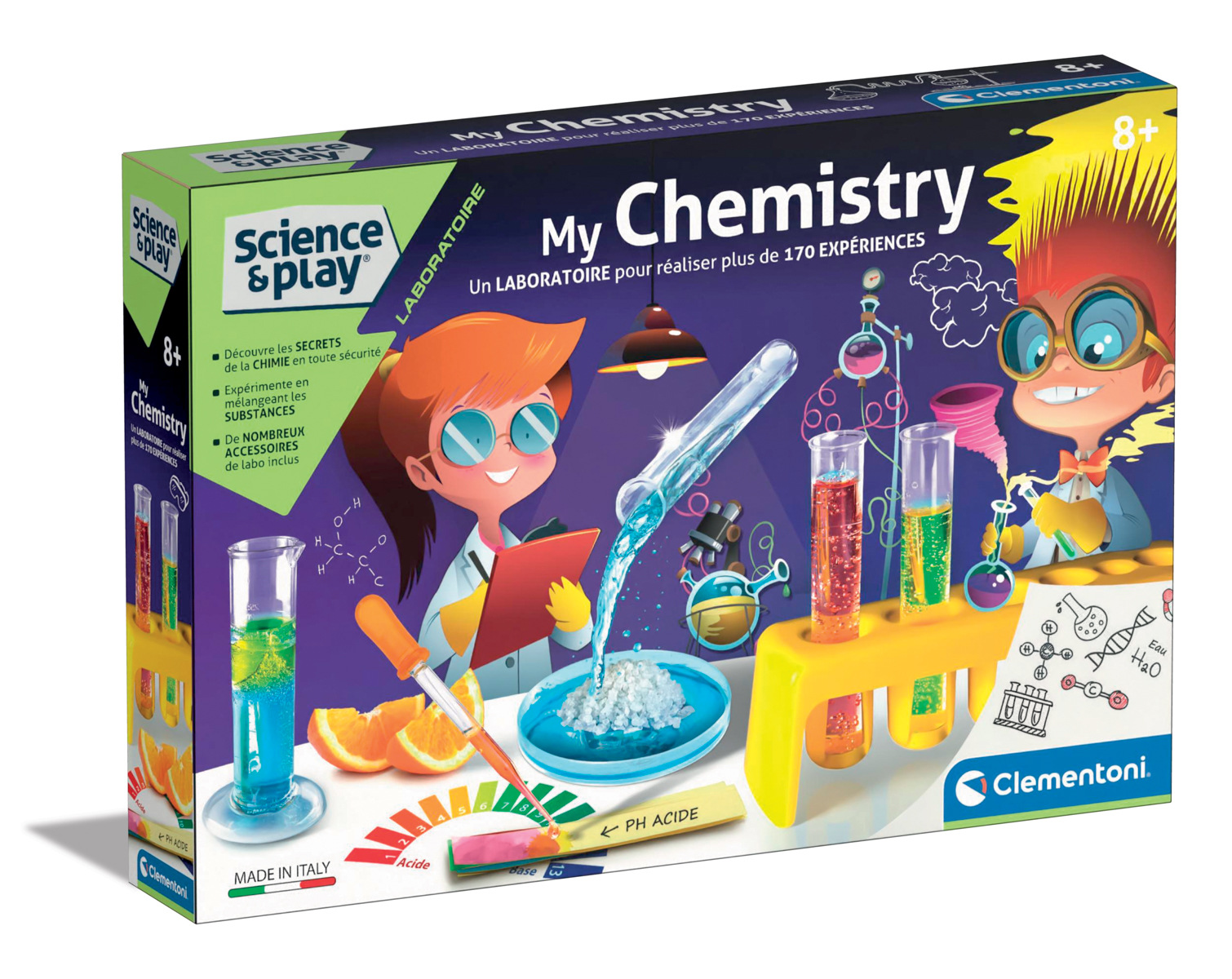 Kompletní laboratoř s bohatou sadou vědeckých přístrojů k provádění více než 170 experimentů, které jsou bezpečné, snadné a budou bavit Tebe i Tvé kamarády. Experimentální sada Moje chemie představuje moderní, plně vybavenou laboratoř pro děti pro studium chemie zábavnou formou. S touto experimentální sadou mohou děti zkoušet různé chemické reakce. To vše díky množství užitečných pomůcek a ilustrovanému návodu. Sada obsahuje: ochranné brýle, odměrné kádinky s víčkem, zkumavky se zátkou, štětku, míchadlo, pipety, modely atomů, stříkačky, odměrný válec, nálevku, stojan na zkumavky, špachtle, plastové hadičky, filtrační papír, pinzetu, bublifuk, chemické látky (kyselinu vinnou, uhličitan sodný, univerzální indikátorový papírek) a ilustrovaný návod. Upozornění: Sada neobsahuje všechny materiály potřebné pro pokusy ani materiály, které se běžně vyskytují v domácnosti. Jazykové mutace: CZ, SK, HU. Rozměry balení: 31,2 x 45,2 x 7,2 cm. Věk: 8+...