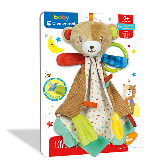 Clementoni Chrastítko - plyšová mazlící dečka s úchytem - Medvídek