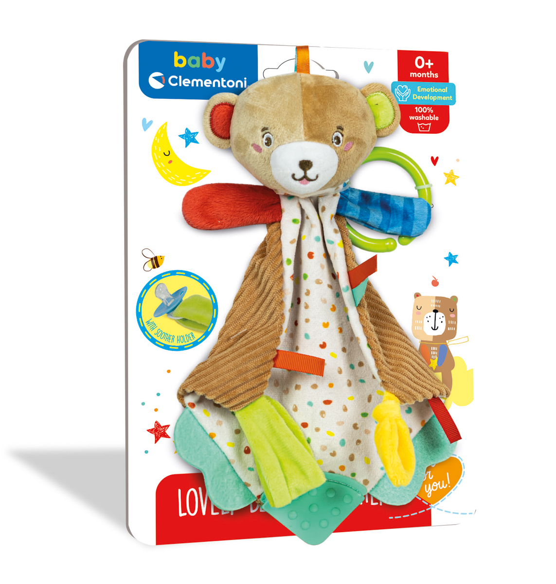 Clementoni Chrastítko - plyšová mazlící dečka s úchytem - Medvídek