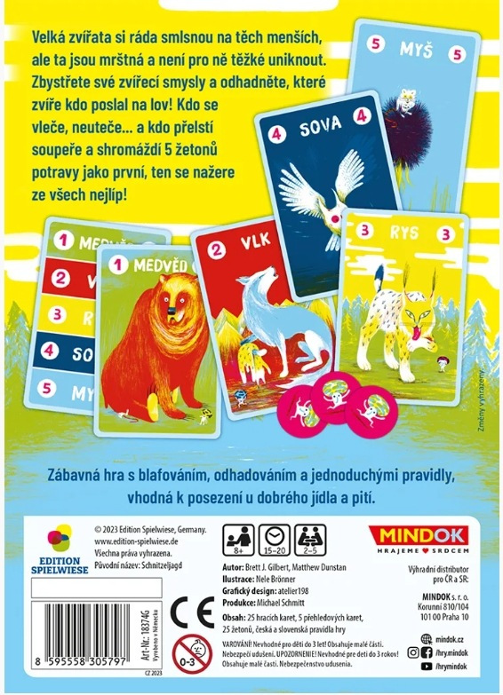 Pravidla jsou opravdu jednoduchá. Každý z vás má pět zvířecích karet (medvěd, vlk, rys, sova, myš), mezi nimiž panuje jasná hierarchie. Všichni hráči současně vyberou jednu kartu a položí ji lícem dolů před sebe. Jeden hráč pak vysloví jméno některého zvířete a ti, kteří tuto kartu vybrali, ji musí otočit.