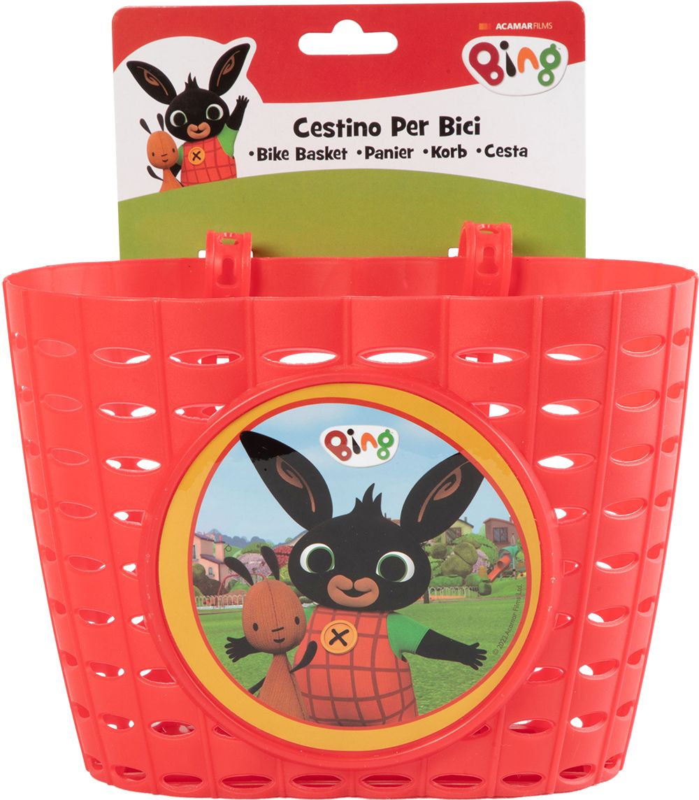 Plastový košík na kolo nebo odrážedlo s motivem BING. Košíček má plastové pásky pro uchycení na řídítka, toto uchycení je variabilní a lze košík připevnitna jakýkoliv typ kola a odrážedla.
