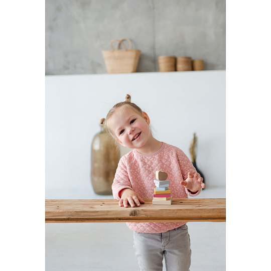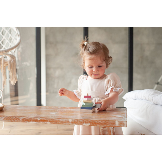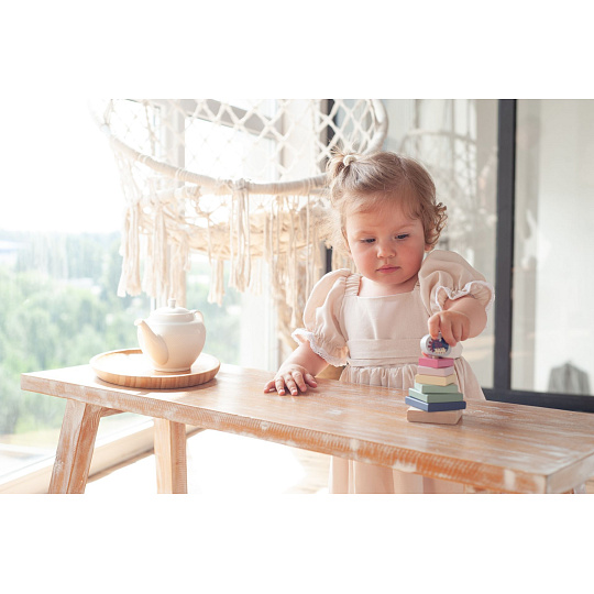 CUBIKA je značka dřevěných hraček vyrobených pouze z ekologicky pěstovaného dřeva s velmi precizním opracováním a líbivým designem a tento výrobek patří do nové kolekce vyrobené v pastelových barvách. Barevná pyramida se slepičkou je dřevěná skládačka s 8 díly, které by na sebe měly být poskládány tak, aby bylo možné zachovat při stavbě správný tvar starodávné egyptské pyramidy a zároveň zachovat plynulou posloupnost barev. Při její stavbě se také děti naučí co je to kompatibilita. Sortiment hraček značky CUBIKA pomáhá dětem rozvíjet především senzomotorické schopnosti a dovednosti, logické myšlení, kreativitu, představivost a různé poznávací znalosti. Hračky jsou vyrobeny z nejkvalitnějšího javoru a buku a k barvení se používají též vysoce kvalitní barvy na vodní bázi, které jsou naprosto bezpečné pro děti a nemají žádný zápach. Všechny výrobky této značky mají německý certifikát TÜV a jsou vyrobeny dle evropské normy pro bezpečnost hraček EN 71. Doporučený věk od 18 měsíců. Vyrobeno v Evropě.