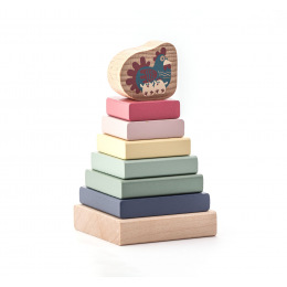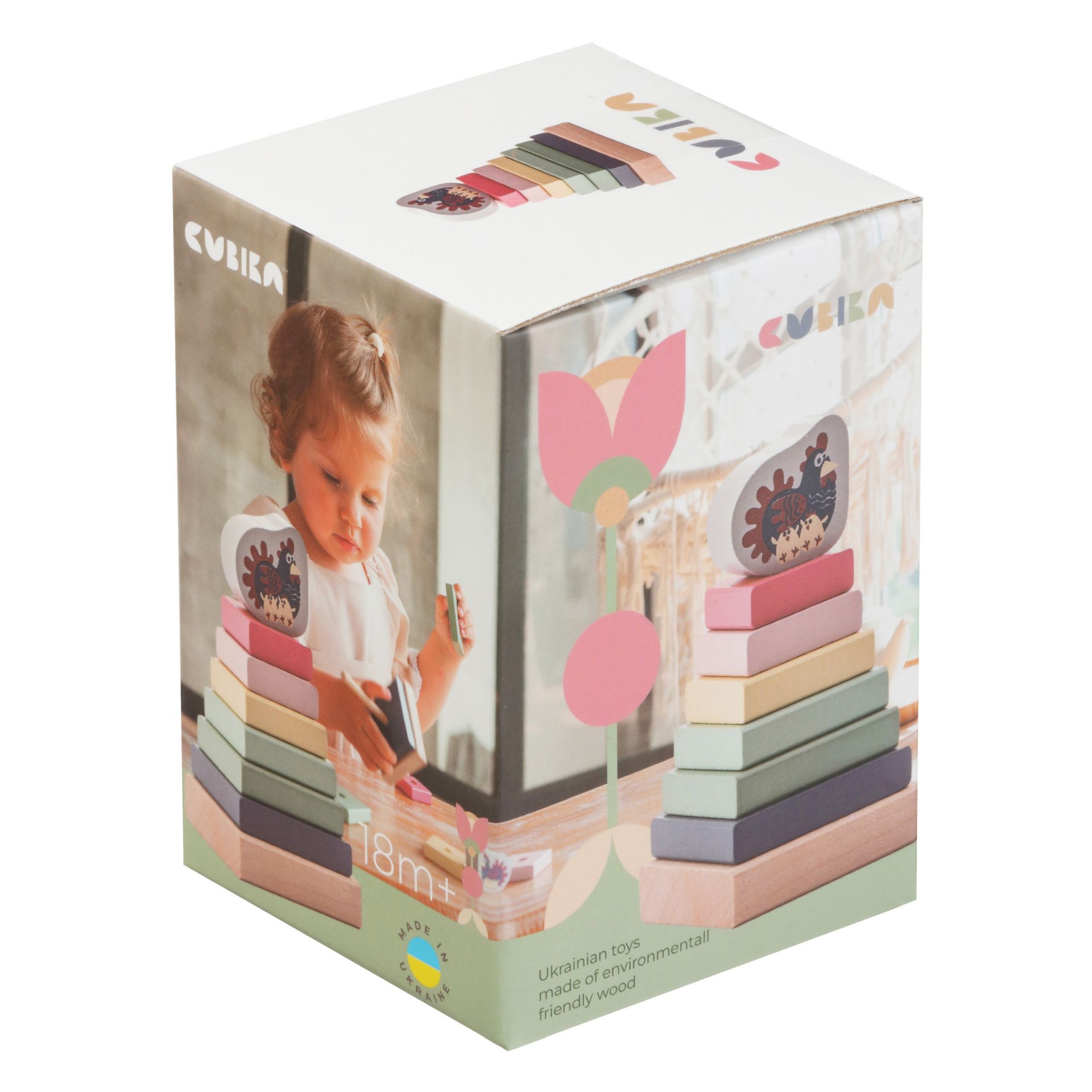 CUBIKA je značka dřevěných hraček vyrobených pouze z ekologicky pěstovaného dřeva s velmi precizním opracováním a líbivým designem a tento výrobek patří do nové kolekce vyrobené v pastelových barvách. Barevná pyramida se slepičkou je dřevěná skládačka s 8 díly, které by na sebe měly být poskládány tak, aby bylo možné zachovat při stavbě správný tvar starodávné egyptské pyramidy a zároveň zachovat plynulou posloupnost barev. Při její stavbě se také děti naučí co je to kompatibilita. Sortiment hraček značky CUBIKA pomáhá dětem rozvíjet především senzomotorické schopnosti a dovednosti, logické myšlení, kreativitu, představivost a různé poznávací znalosti. Hračky jsou vyrobeny z nejkvalitnějšího javoru a buku a k barvení se používají též vysoce kvalitní barvy na vodní bázi, které jsou naprosto bezpečné pro děti a nemají žádný zápach. Všechny výrobky této značky mají německý certifikát TÜV a jsou vyrobeny dle evropské normy pro bezpečnost hraček EN 71. Doporučený věk od 18 měsíců. Vyrobeno v Evropě.