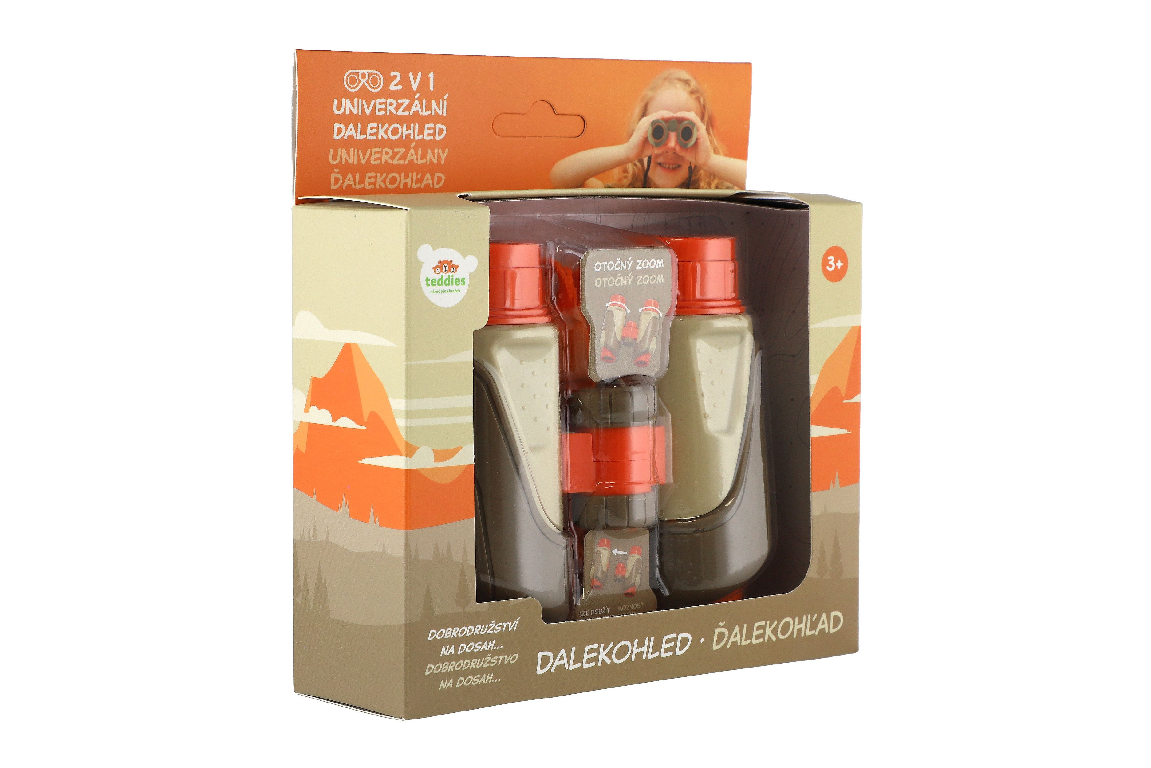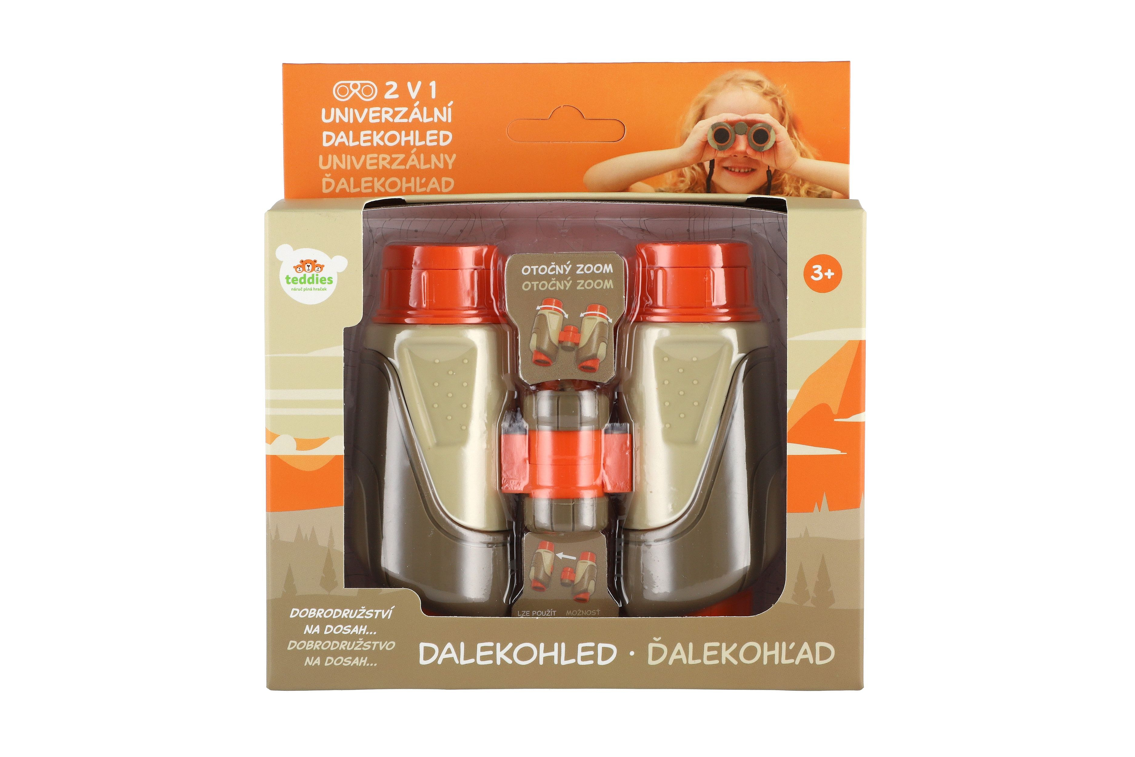Lehký univerzální dalekohled 2v1. Dopřejte svým dětem kochat se obrazem živých ptáků nebo zvěře při lovu. Povzbudíte je tím k probádání venkovního světa. Dalekohled je možné rozpojit a máte tak 2v1, má otočný zoom a nastavitelnou šířku. Součástí balení je šňůrka. Rozměry balení 15,5 x 16,5 x 5 cm Vhodné pro děti od 3 let.