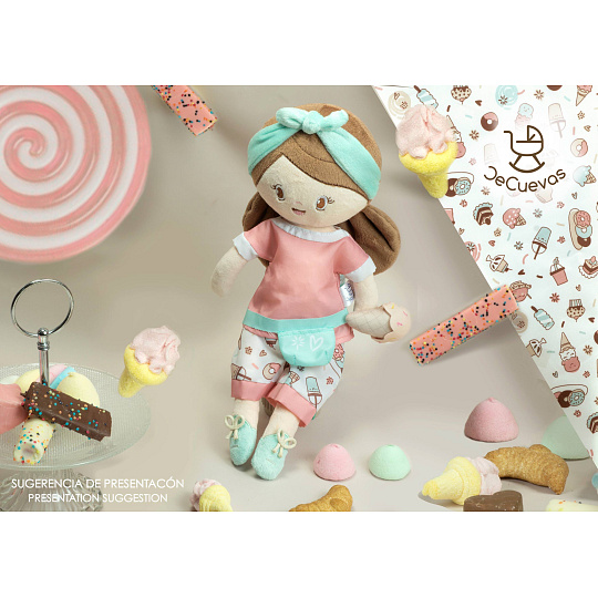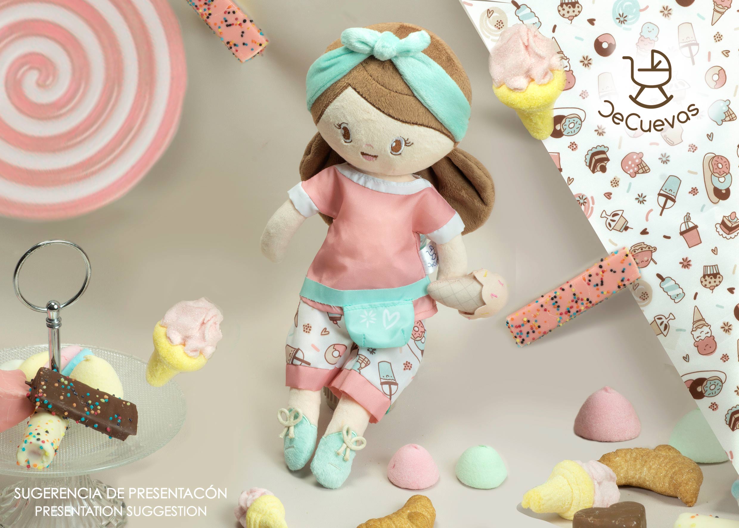 DeCuevas 20148 Plyšová panenka SWEET - 36 cmPlyšová panenka SWEET je malá slečna se zmrzlinkou v ruce, patřící do stejnojmenné kolekce, která je novinkou roku 2022 a nabízí kromě různých druhů kočárků i další doplňky pro budoucí hospodyňky. Charakteristická je pro ní sladěná kombinace barev lososové s béžovou a bílé s jemnými motivy drobných dortíků, zmrzlinek a muffinů, které působí roztomile a hravě. Panenka je vyrobena z vysoce kvalitního hladkého lesklého plyše a je pratelná (ručně na 30 °C). Díky své velikosti a lehoučké váze je ideální společnicí každé malé holčičky nejenom na cestách, ale díky měkkému materiálu je příjemná i na mazlení do postýlky. Panenka je balena v igelitovém obalu. Velikost 36 cm. Doporučený věk 12m +.Doplňující informace:• Nádherný španělský design• Materiál: plyš, polyester, duté vlákno• Pratelná ručně na 30 °C• Rozměry samotné panenky: 15 x 8 x 36 cm (š x d x v)• Baleno v ochranném igelitovém obalu • Rozměry balení 15 x 8 x 36 cm (š x d x v)• Váha balení: 0,12 kg• Doporučený věk od 12 měsíců