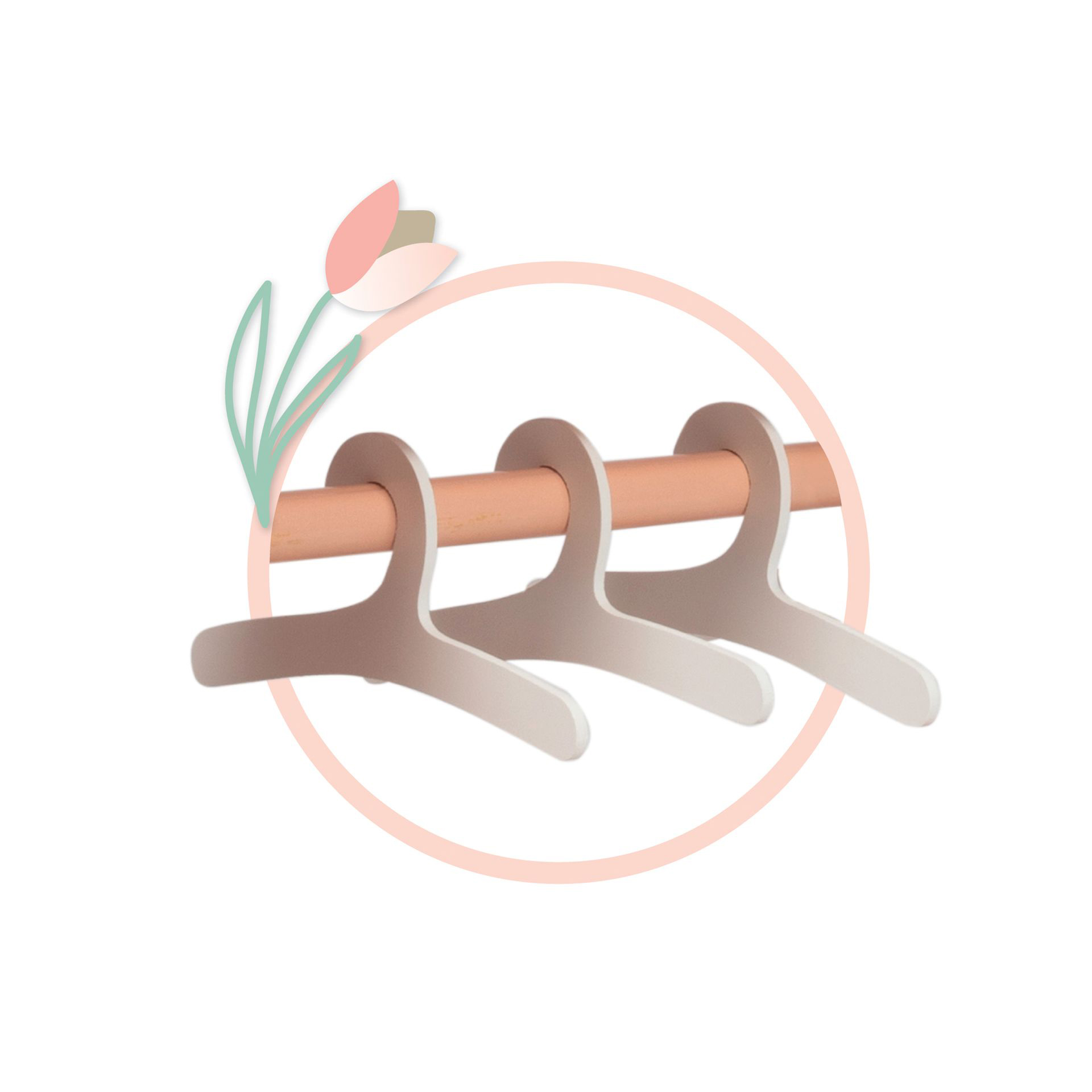 Rappa DeCuevas 55874 Dřevěný šatní věšák na oblečení pro panenky Tulipe 2025