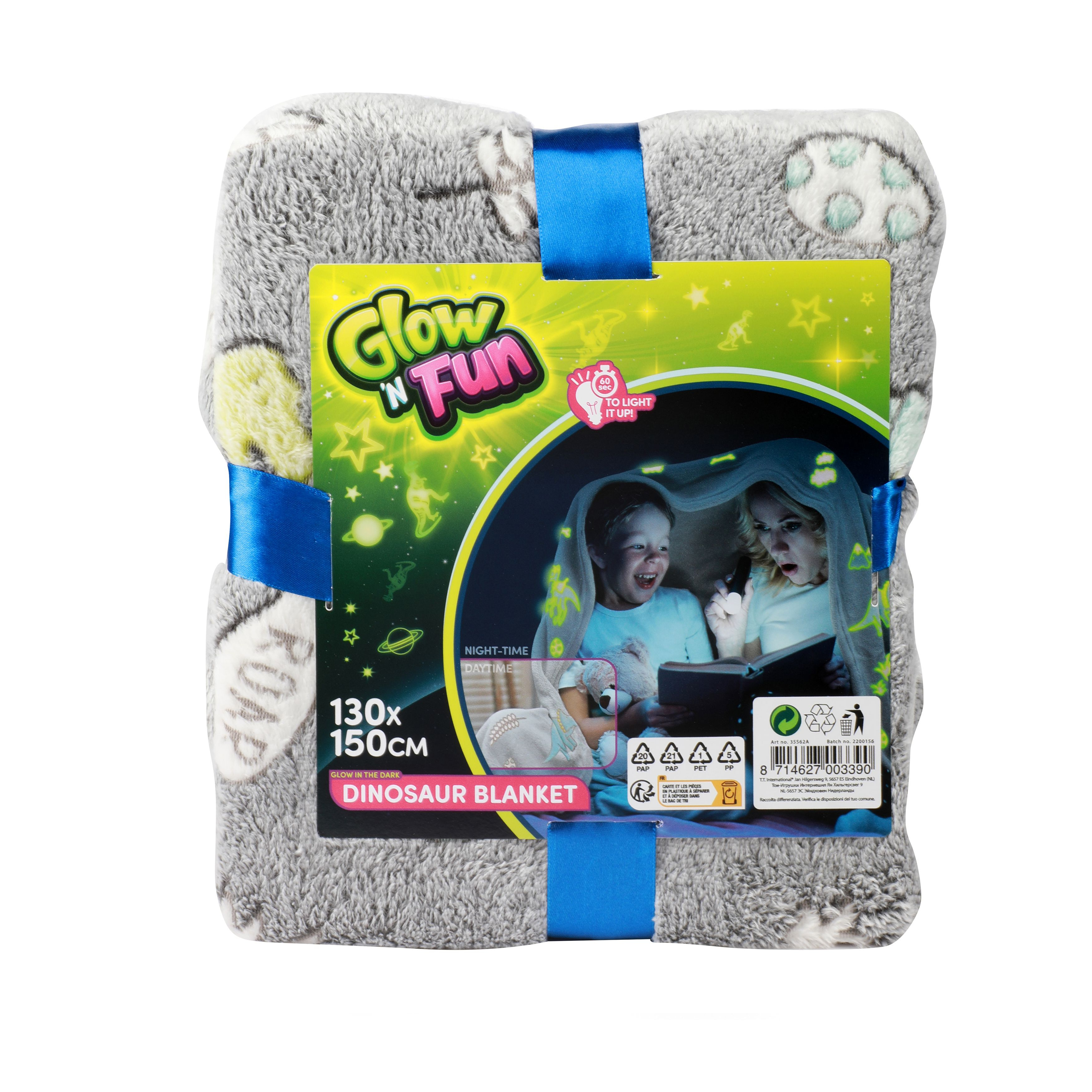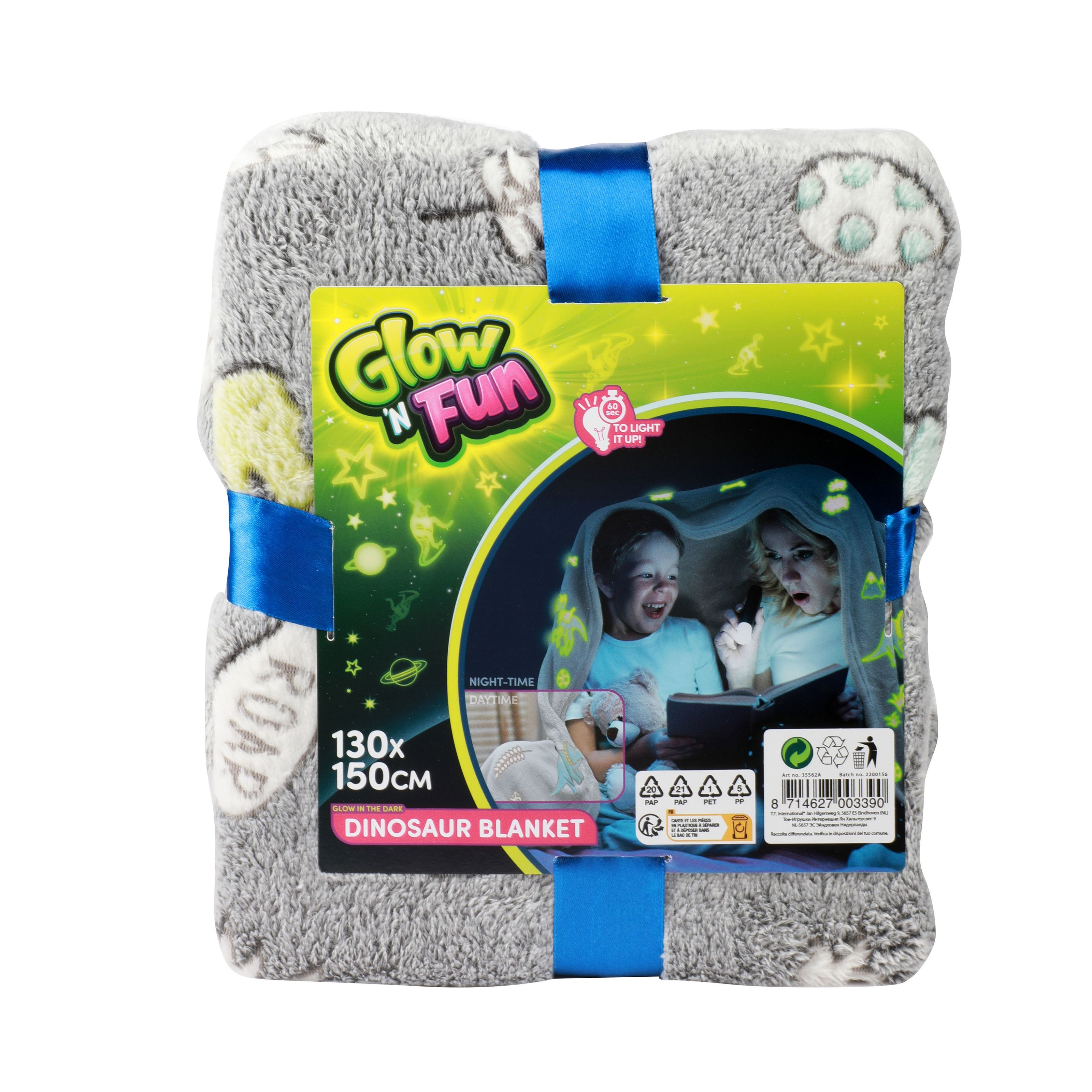 Deka Dinosaurus svítící ve tmě plyš 130x150cm šedivá