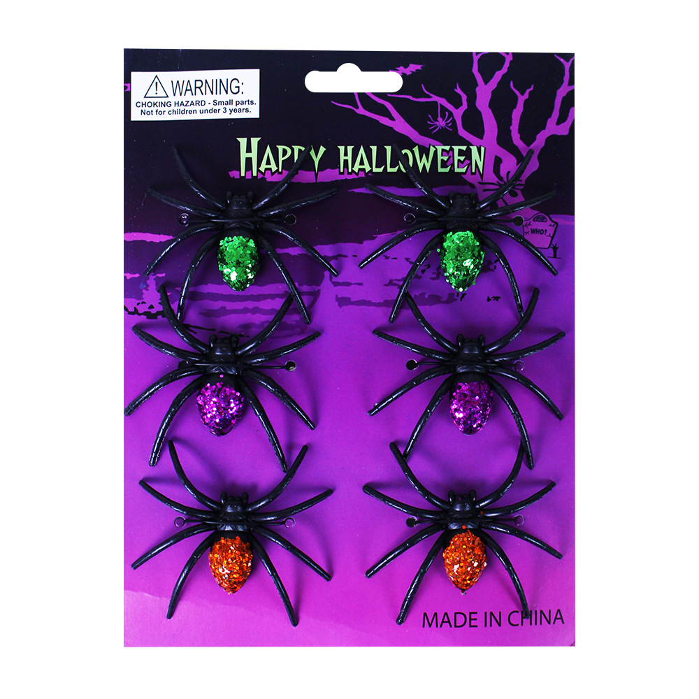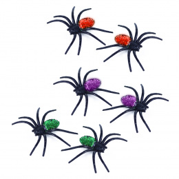 Malí gumoví pavouci, kteří jsou senzační dekorací na Halloweenskou párty! Balení obsahuje 6 ks barevných třpytivých pavoučků.