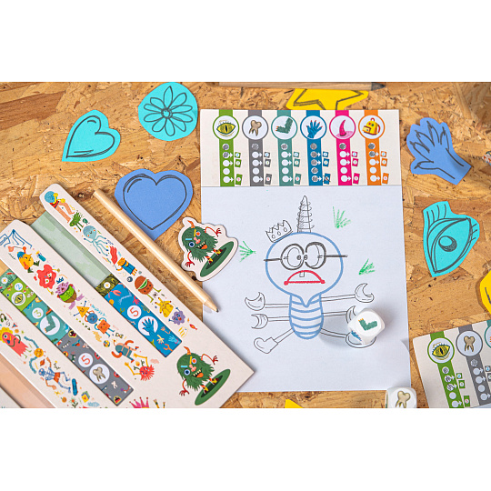 Postupně kreslete svou příšeru a zvyšujte si skóre na svém děsometru vkládáním žetonů příšery (zubů, rukou, nohou...).
