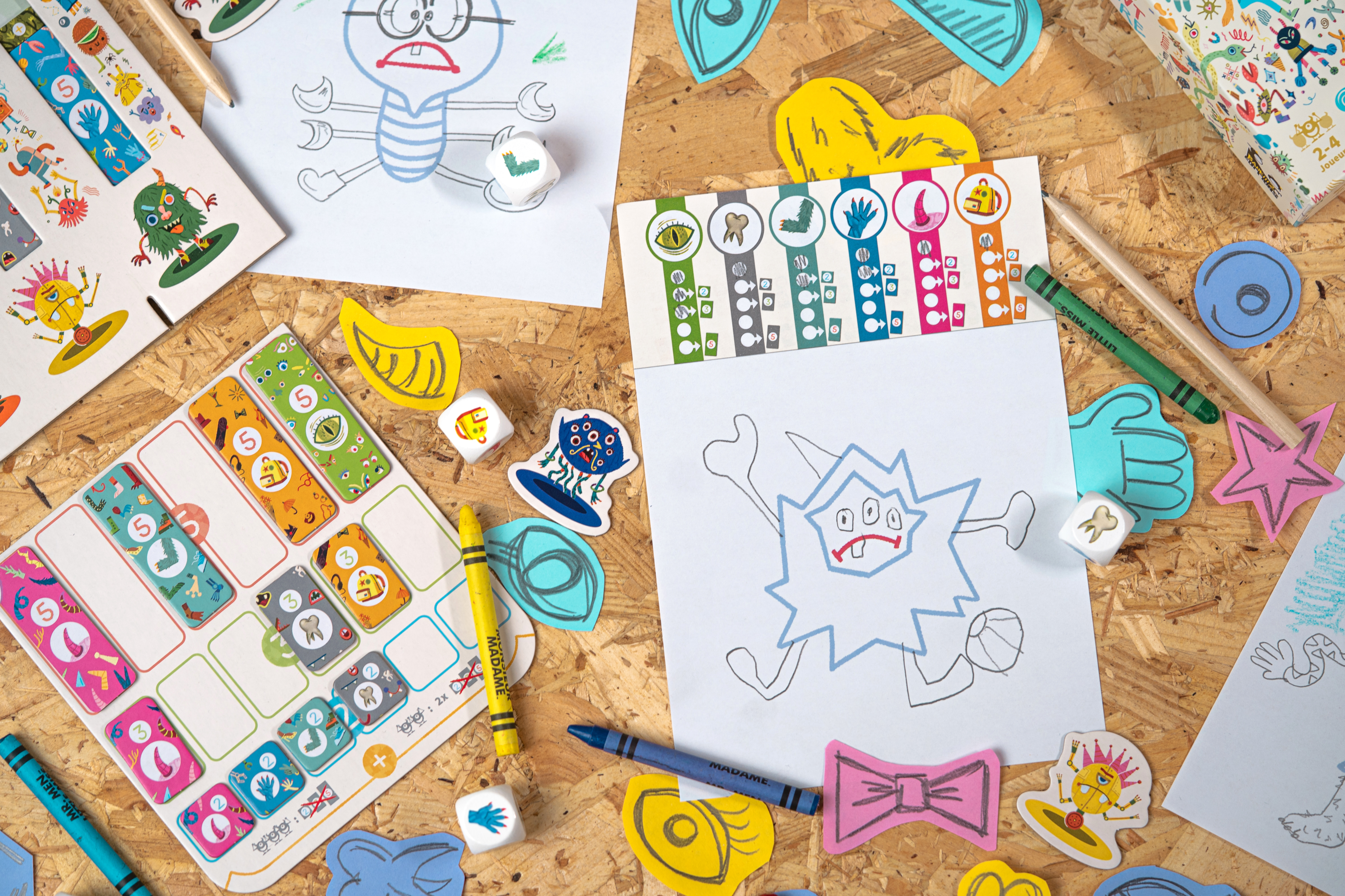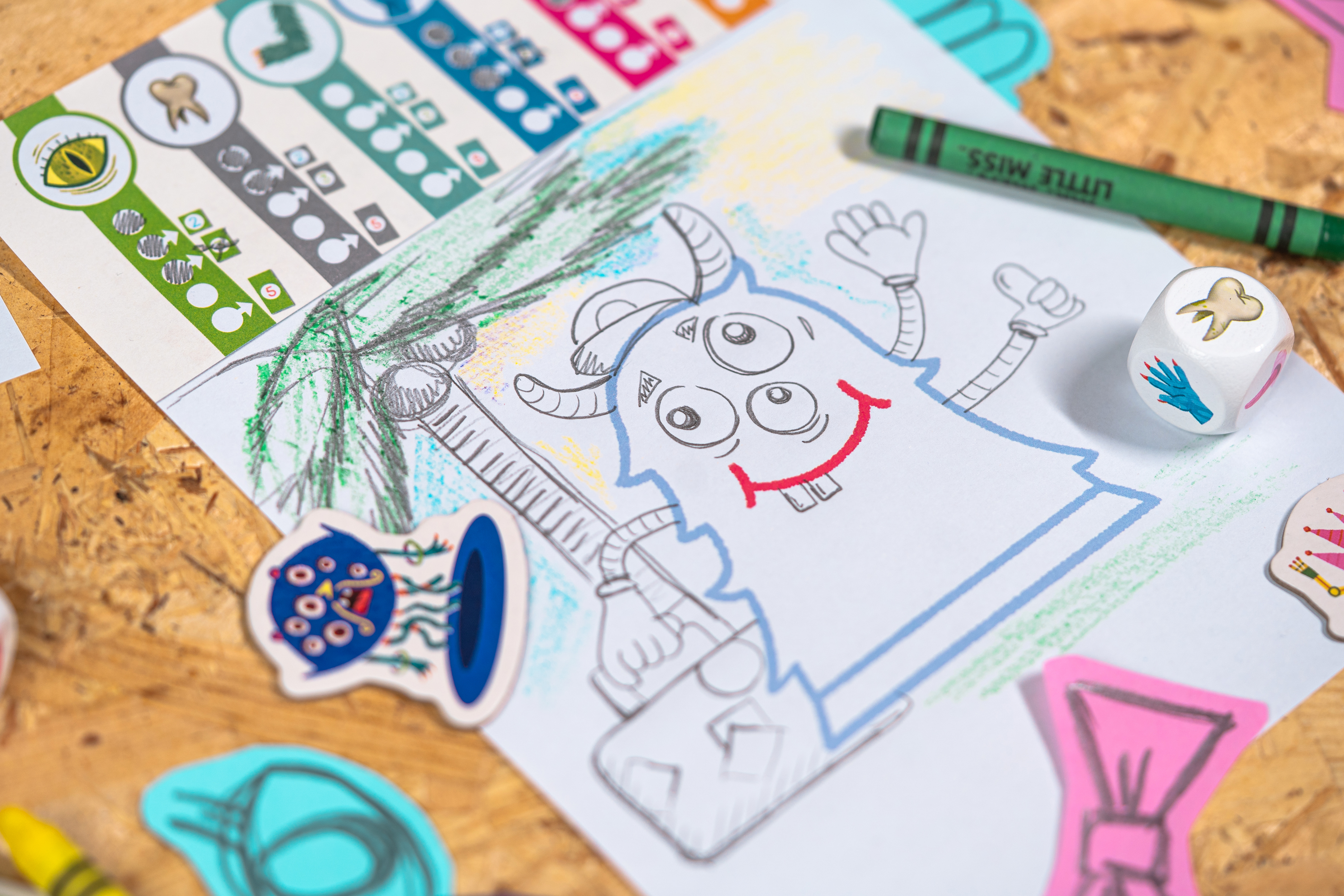 Postupně kreslete svou příšeru a zvyšujte si skóre na svém děsometru vkládáním žetonů příšery (zubů, rukou, nohou...).