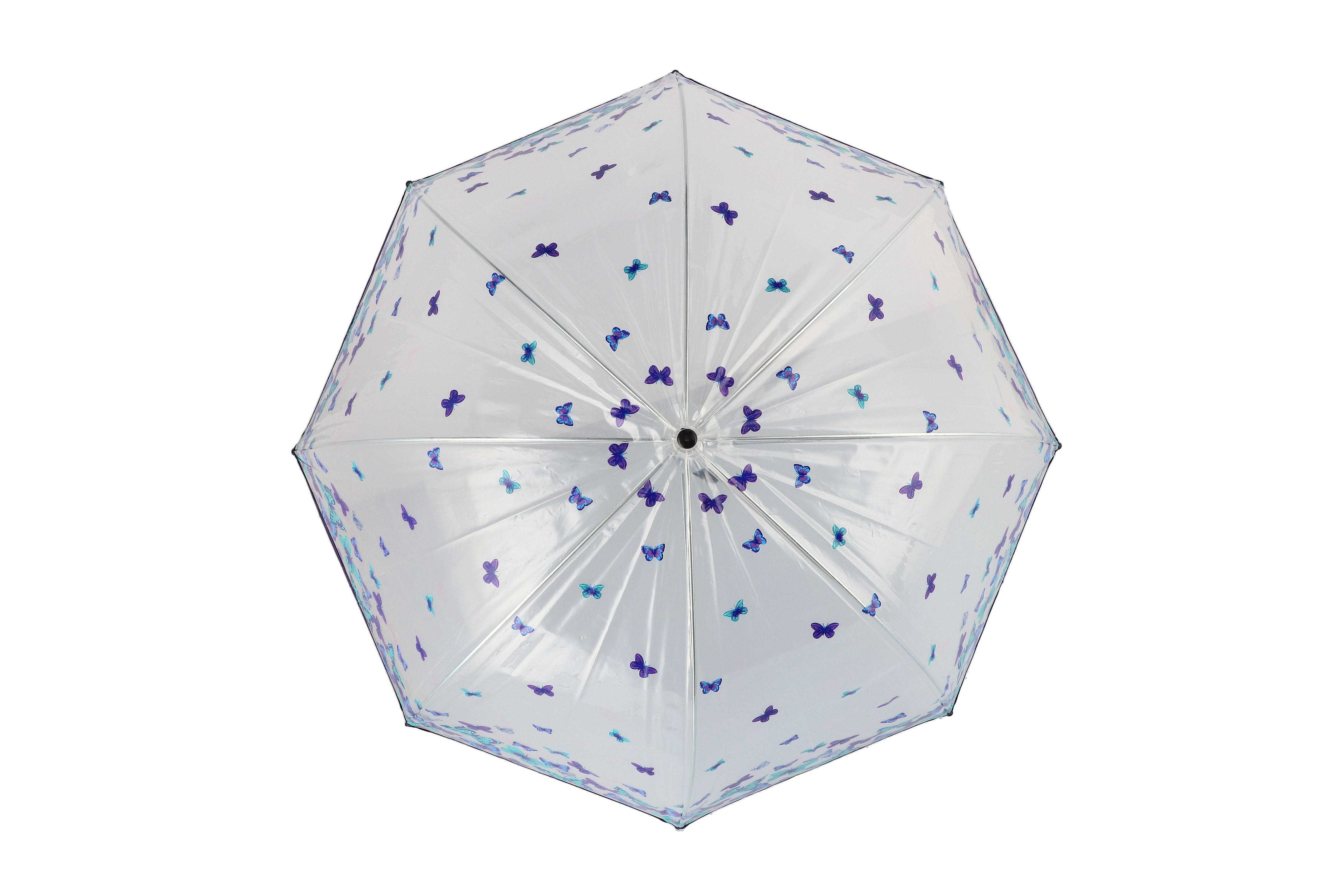 Průhledný deštník s motýlky, o průměru 80 cm. Praktický a stylový doplněk, který rozjasní deštivé dny. Není hračka