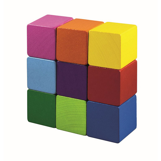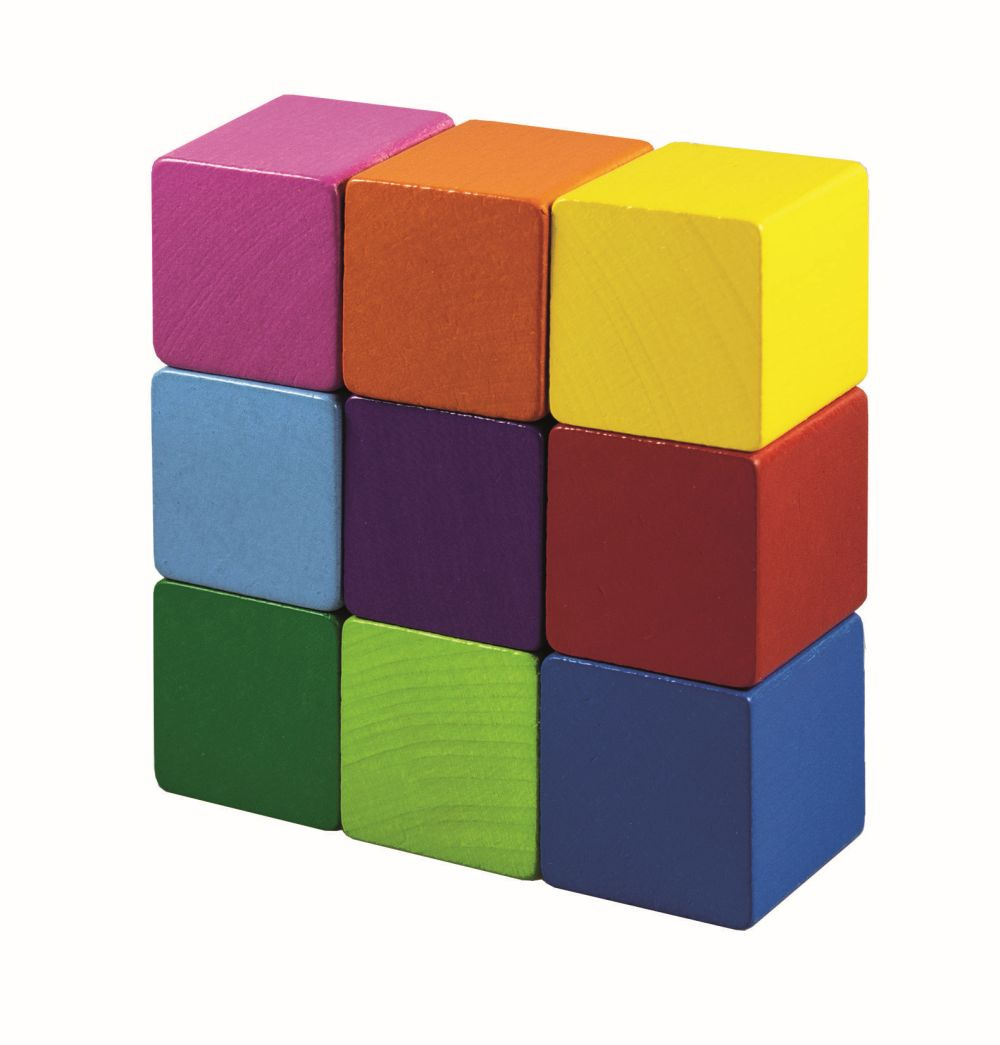 Balení obsahuje 9 různě barevných kostiček.