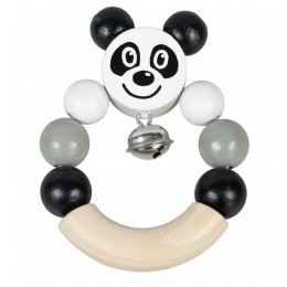 Dřevěné chrastítko s pandou v moderní černo/bílé kombinaci barev. Snadno uchopitelné, rolnička jemně cinká.
