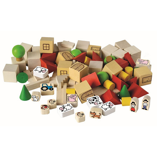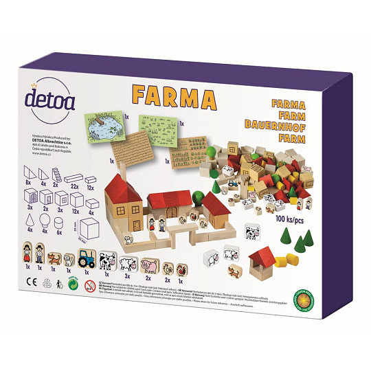 Stavebnice obsahuje 100 ks dřevěných dílků s potiskem v různých tvarech a velikostech.\n\nStavebnice pomáhá rozvíjet dětskou představivost a motoriku rukou.\n\nVýrobek splňuje požadavky EU na bezpečnost hraček a je vhodný pro děti od 3 let.\n\nBaleno v papírové krabičce o rozměrech 293x60x198 mm