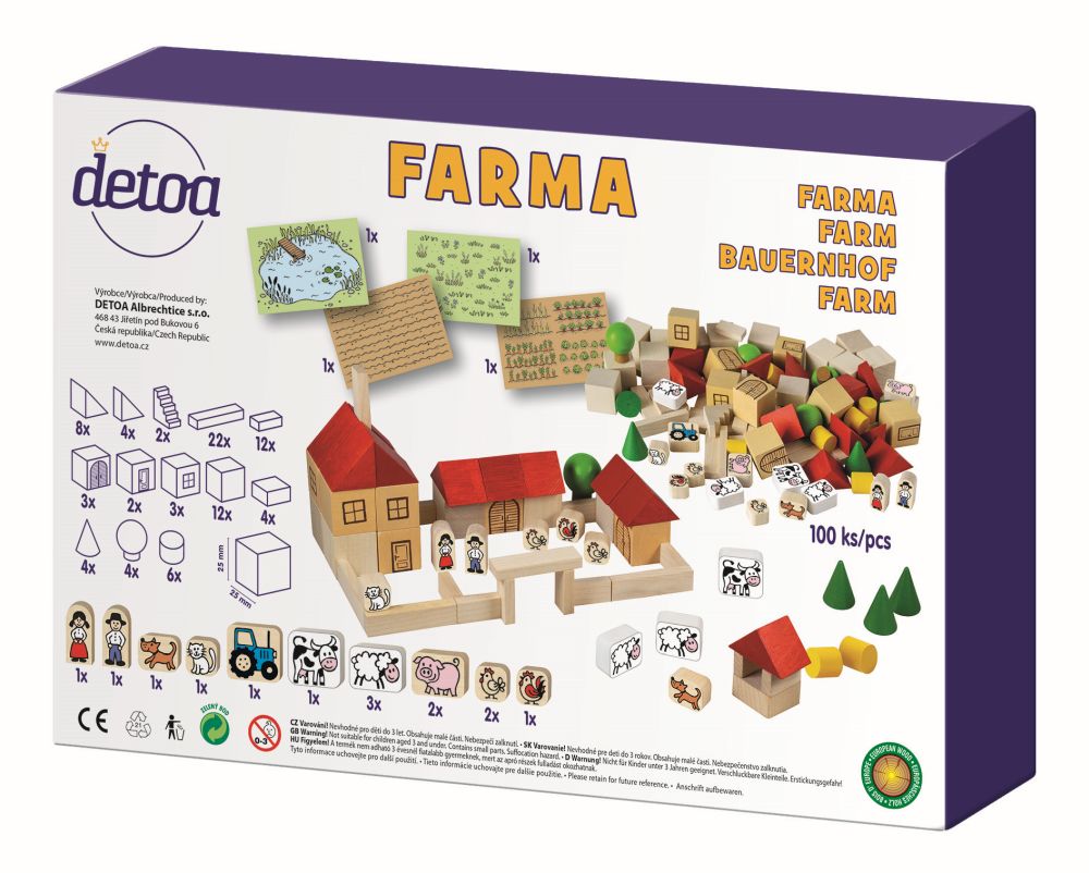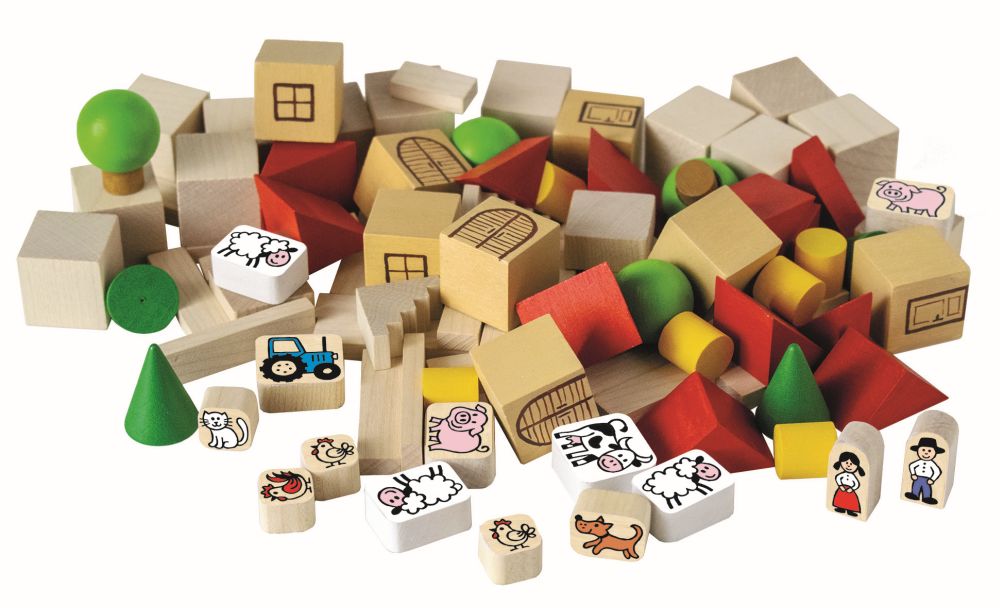 Stavebnice obsahuje 100 ks dřevěných dílků s potiskem v různých tvarech a velikostech.\n\nStavebnice pomáhá rozvíjet dětskou představivost a motoriku rukou.\n\nVýrobek splňuje požadavky EU na bezpečnost hraček a je vhodný pro děti od 3 let.\n\nBaleno v papírové krabičce o rozměrech 293x60x198 mm