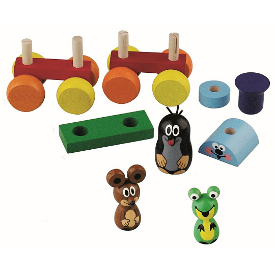 Vláček lze libovolně skládat a měnit pořadí figurek. Mašinka má dva obličeje – veselý a udivený. Baleno v krabici z tvrdého papíru. Nevhodné pro děti do 3 let. Obsahuje malé části. Výrobek je zdravotně nezávadný.