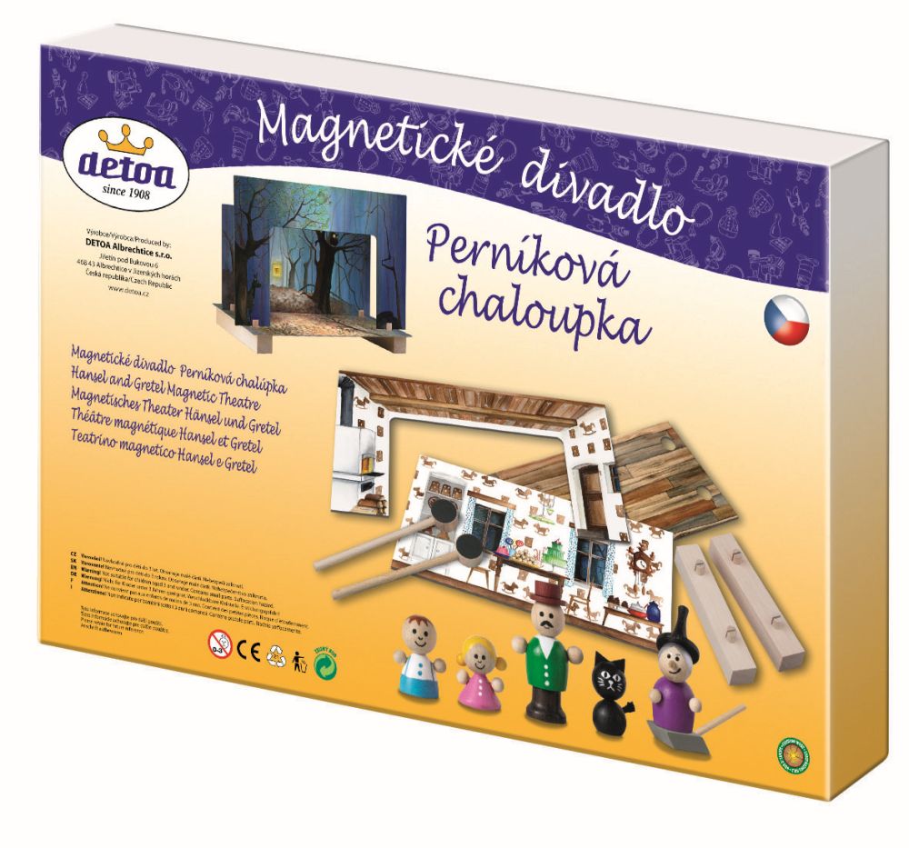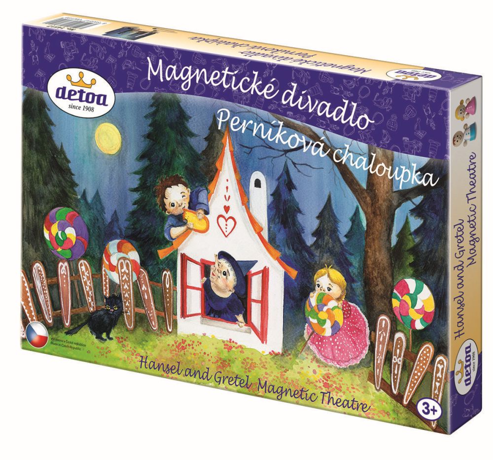 Magnetické divadlo Perníková chaloupka je výborná zábava pro malé i velké na motivy oblíbené pohádky. Ve figurkách je vlepený magnet který se přitahuje k magnetu ve vodítku.\n\nHra rozvíjí dětskou fantazii a kreativitu při vymýšlení vlastních pohádkových příběhů.