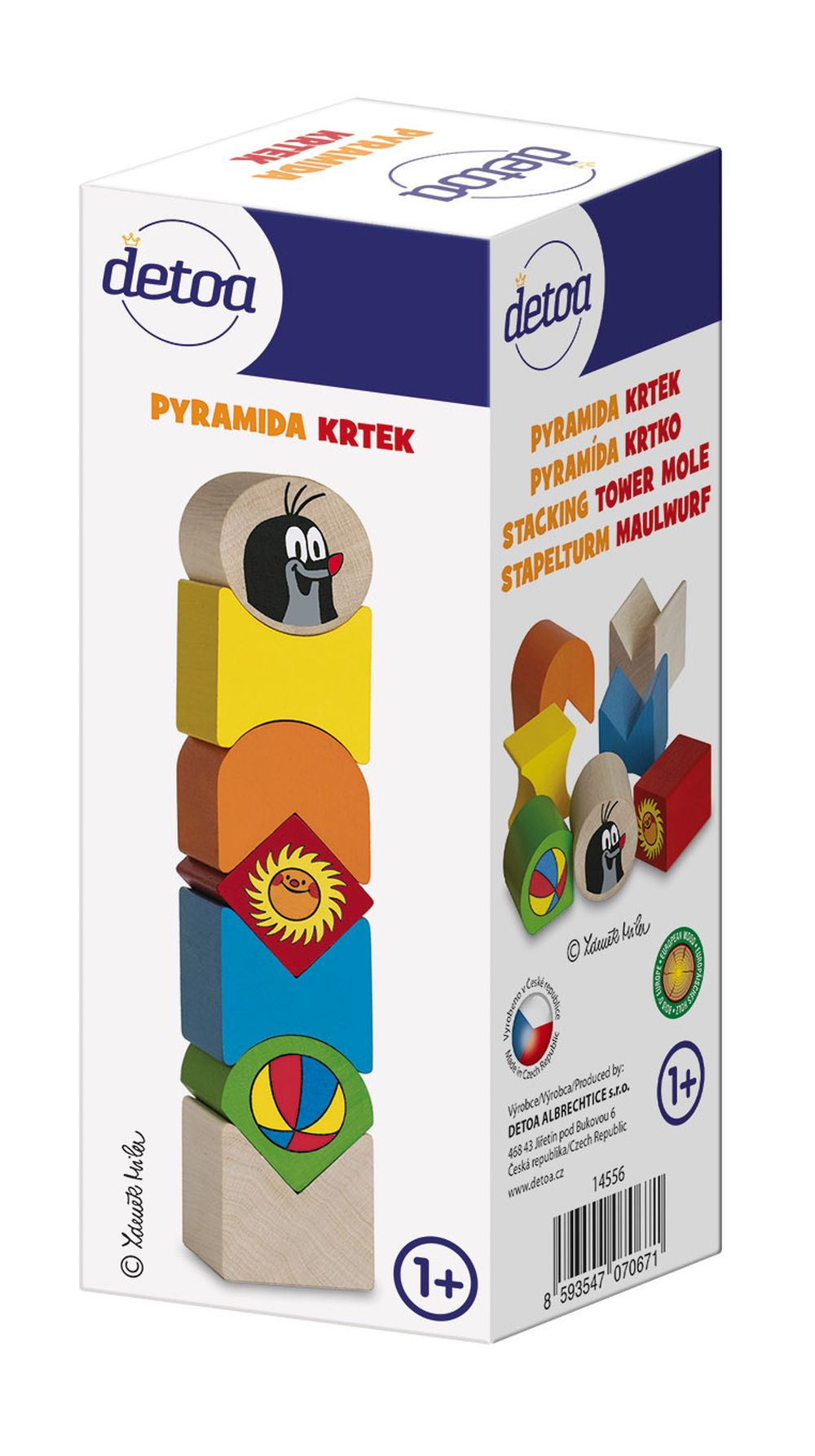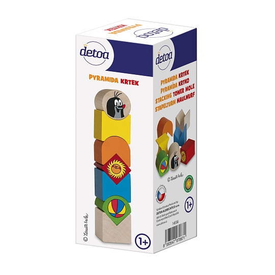 Dřevěná skládací pyramida rozvijí představivost, logické myšlení a motorické schopnosti dítěte. Výrobek splňuje požadavky EU na bezpečnost hraček a je vhodný pro děti od 1 roku. Rozměry výrobku jsou 140 x 55 mm.