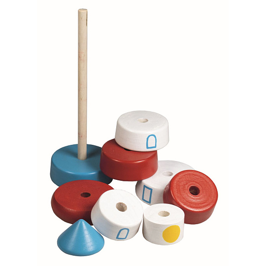 Dřevěná skládací pyramida s motivem majáku, rozvijí představivost, logické myšlení a motorické schopnosti dítěte.\n\nVýrobek splňuje požadavky EU na bezpečnost hraček a je vhodný pro děti od 1 roku.\n\nRozměry výrobku jsou 140 x 55 mm.