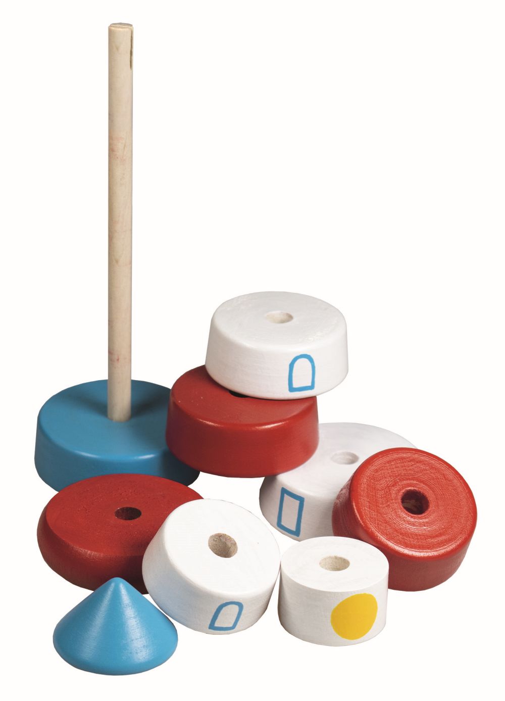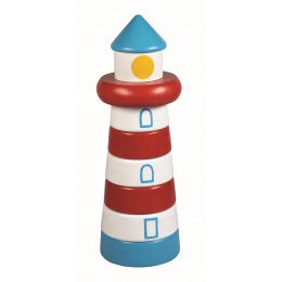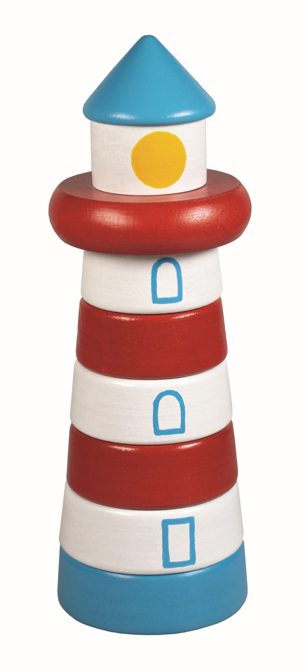 Dřevěná skládací pyramida s motivem majáku, rozvijí představivost, logické myšlení a motorické schopnosti dítěte.\n\nVýrobek splňuje požadavky EU na bezpečnost hraček a je vhodný pro děti od 1 roku.\n\nRozměry výrobku jsou 140 x 55 mm.