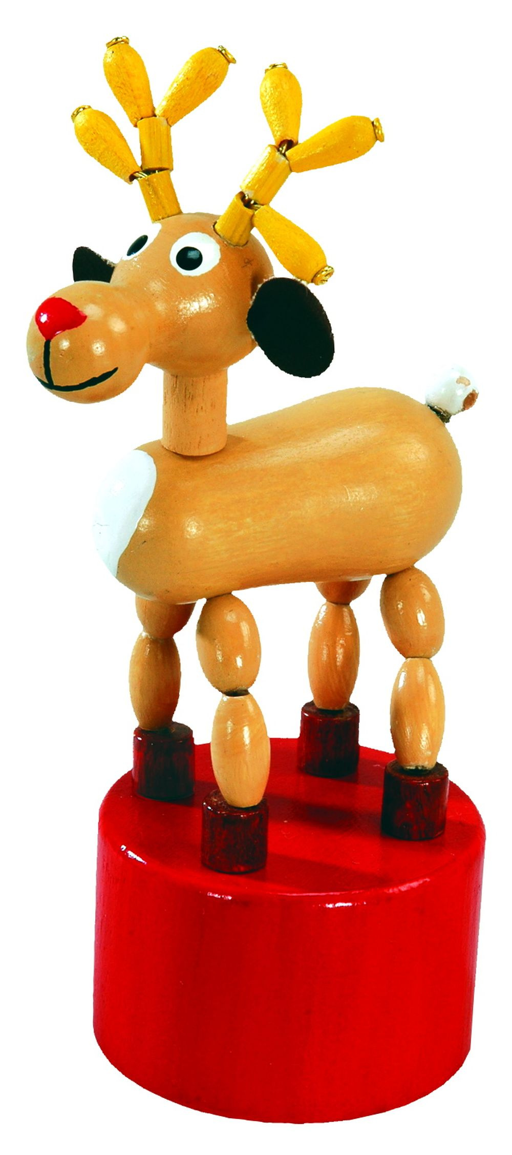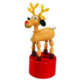 Veselá mačkací figurka v podobě soba, při zmáčknutí tlačítka skrytého v podstavci se legračně pohybuje.
