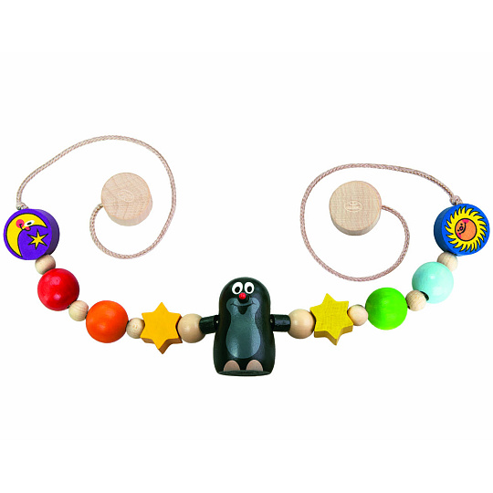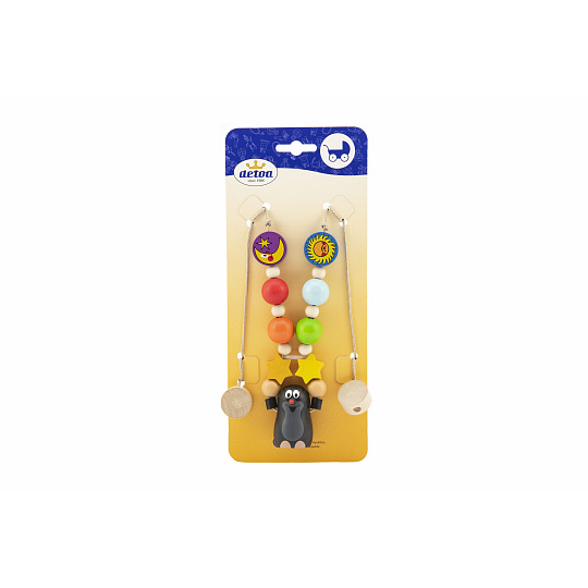 Závěs z dřevěných dílků s oblíbeným Krtečkem zabaví Vaše dětátko. Šňůrku lze připevnit na kočárek, vajíčko nebo lehátko. Šňůrka musí být mimo dosah dítěte. Jakmile na ni již dítě dosáhne, musí být odstraněna. Výrobek splňuje požadavky EU na bezpečnost hraček. Závěs se dodává připevněn na papírové kartě. Rozměry balení 10,5 x 25 x 4 cm.