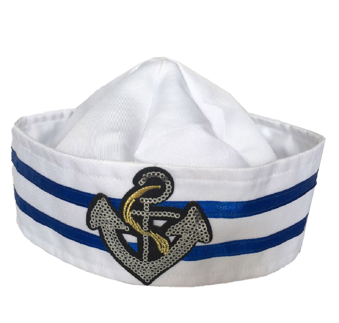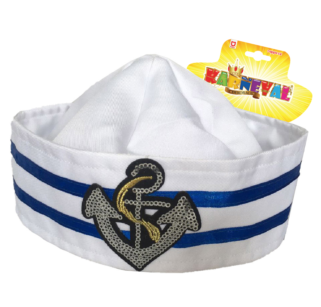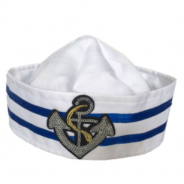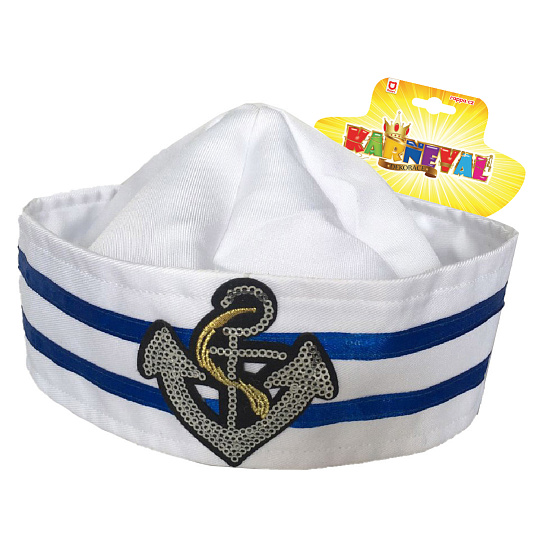 Parádní čepice pro malé námořníky! Tento senzační kousek je zdoben nášivkou stříbrné kotvy na přední straně. Staň se hvězdou karnevalového večírku díky této nepřehlédnutelné čepici a ohrom tak všechny své kamarády!
