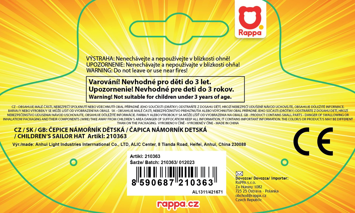 Rappa Dětská čepice námořník bílá