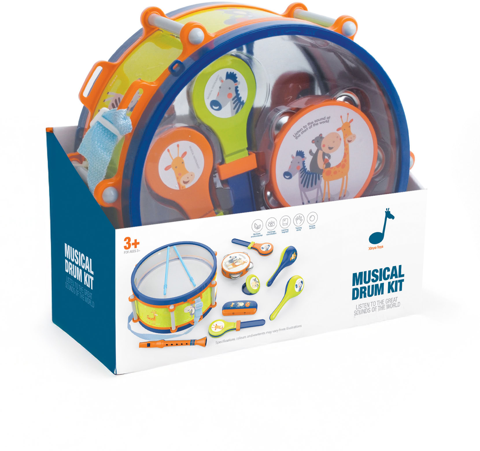 V tomto hudebním setu jsou zastoupeny nástroje několika skupin. Bicí nástroje zde zastupuje xylofon. Jeho kovové plátky jsou usazeny na filcových kroužcích, které regulují ostrost zvuku. Dřevěný rám i paličky propůjčují zvuku hloubku a sametovový tón. Rytmické nástroje zastupuje oblíbený maracas, který je zde tvořen plastovými vajíčky. Hloubka jejich zvuku se dá ovlivnit posazením nebo sevřením vajíčka v dlani. Zástupcem perkusních nástrojů je v tomto setu tamburína, po jejímž obvodu se nachází rolničky. Používá se hlavně v italské lidové, romské a perské hudbě. Zástupcem tzv.idiofonů jsou dřevěné špalíky, které se používají jako jednoduchý doprovodný nástroj.