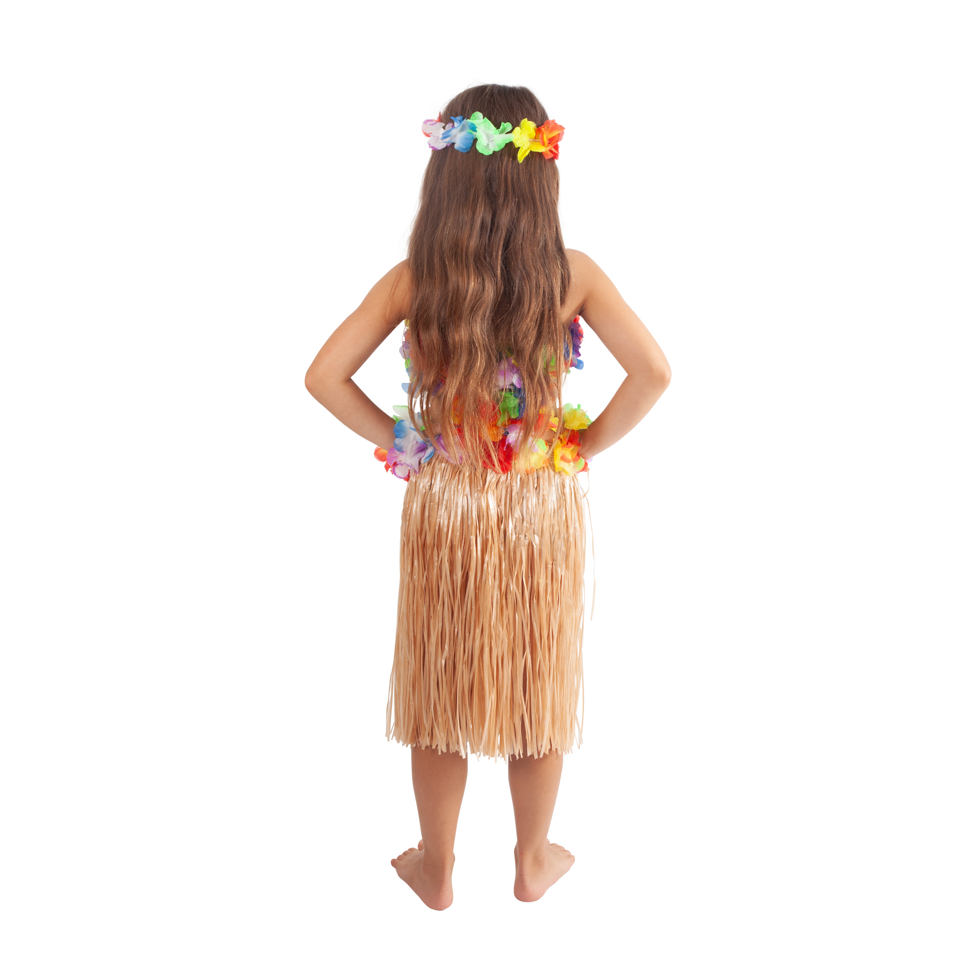 Senzační sukýnka ve stylu "Havaj" je ideálním doplňkem na karneval nebo k typickému havajskému tanci "HULA"! Sukýnka je určena pro holčičky ve věkovém rozmezí 3-10 let (104-150 cm). Sukně, dlouhá 45 cm, je vyrobena z tenkých igelitových pásků v přírodní barvě a zdobena barevnými okvětními lístky. Balení obsahuje pouze sukni.