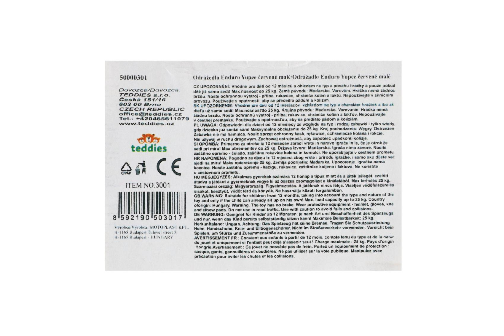 Teddies Dětské odrážedlo Enduro Yupee červené malé