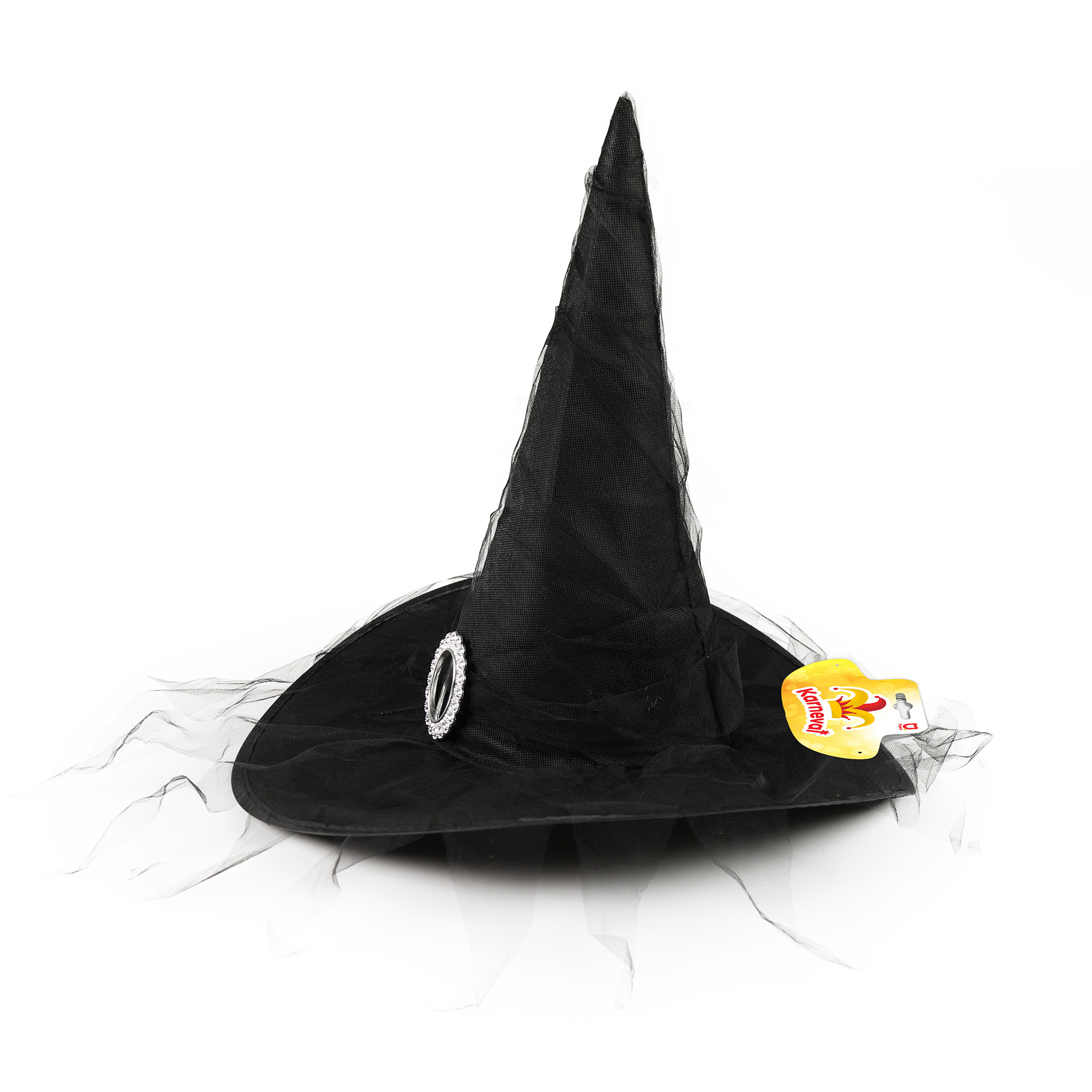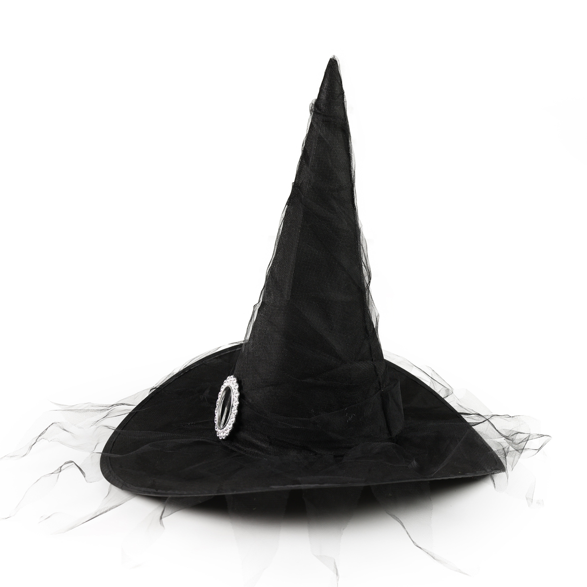 Stylový strašidelný čarodějnický klobouk pro děti v černé barvě se stříbrnou sponou. Staňte se hvězdou karnevalového nebo halloweenského večírku díky tomuto nepřehlédnutelnému klobouku!