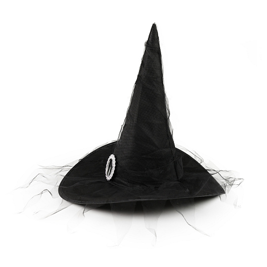 Čarodějnický klobouk s ozdobnou pavučinou.