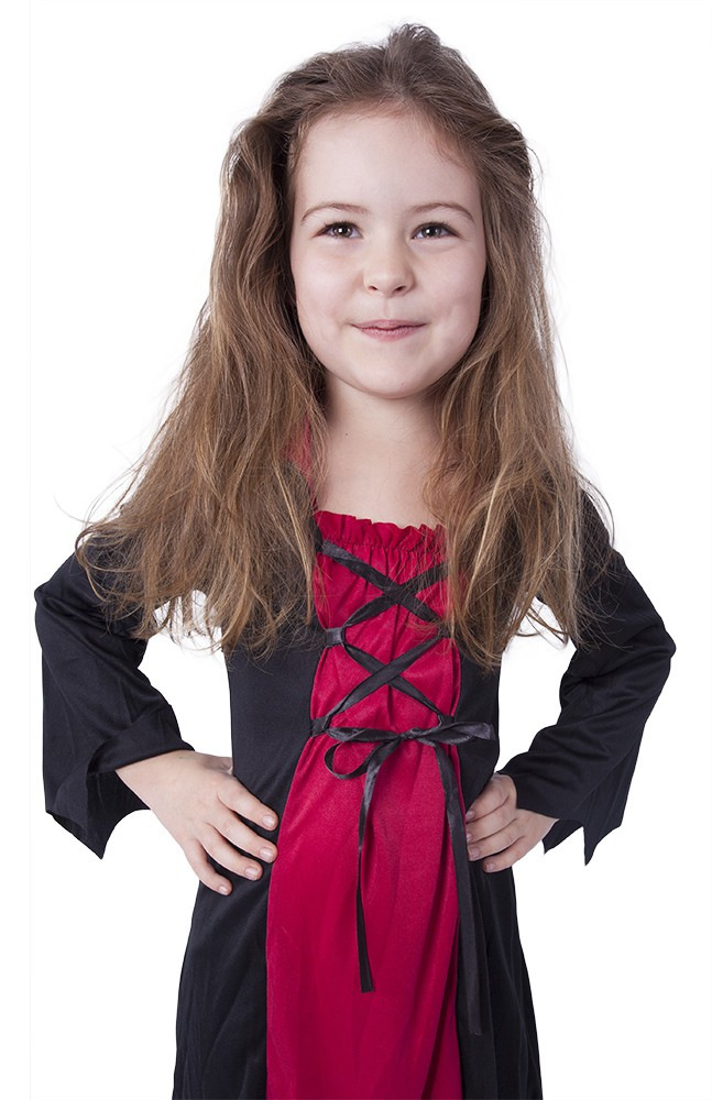 Roztomilý čarodějnický kostým o velikosti M je určen pro holčičky ve věkovém rozmezí 6-8 let (117-128 cm). Černé šaty s nadýchanou sukní jsou zdobeny oranžovými prvky a saténovou stuhou v přední části. Součástí balení je samozřejmě perfektně sladěný klobouk, který dodá kostýmu tu správnou atmosféru! S tímto úchvatným kostýmem se zaručeně
