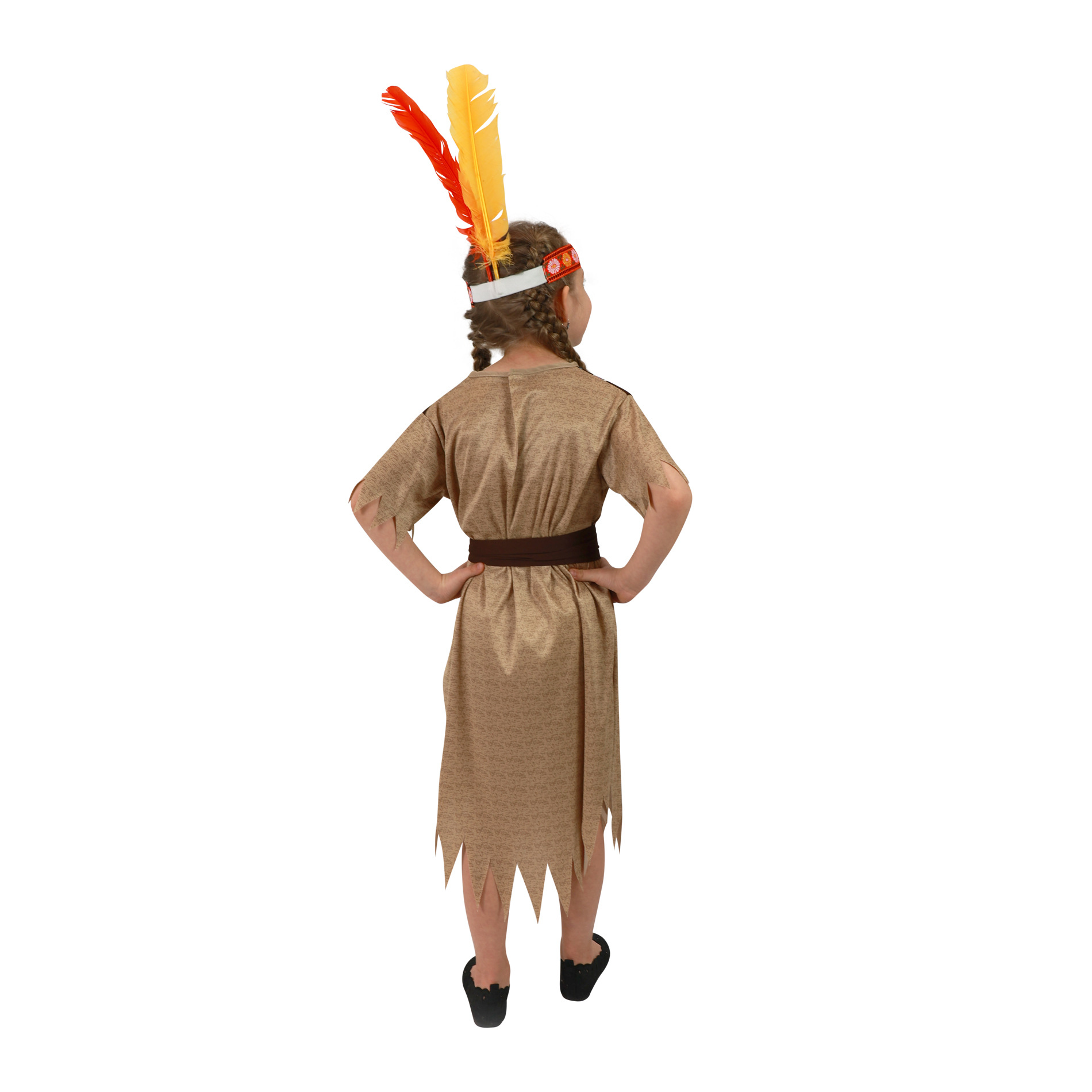 Stylový karnevalový kostým v motivu indiánské slečny! Kostým hnědé barvy ve velikosti M je určen pro děvčata ve věkovém rozmezí 6-8 let (117-128cm). Staň se největší hvězdou karnevalu! Sekera ani čelenka nejsou součástí balení.