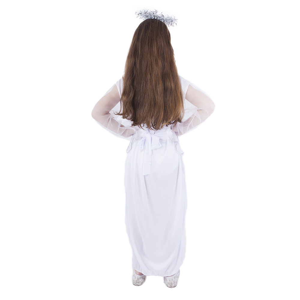 Půvabný karnevalový kostým s motivem anděla ve stříbrno-bílé barvě a velikosti M je určen pro holčičky ve věkovém rozmezí 6-8 let (116-128 cm). Balení obsahuje svatozář, pásek a šaty.