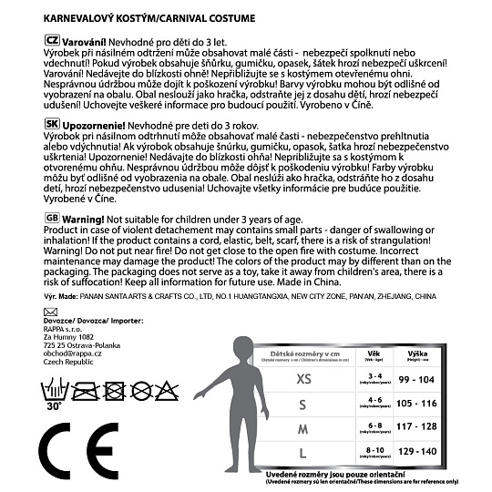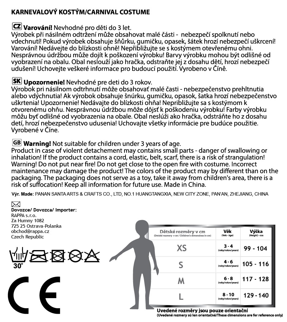 Magický karnevalový kostým pro malé čarodějnice! Kostým černo-oranžové barvy ve velikosti S je určen pro holčičky ve věkovém rozmezí 4-6 let (105-116 cm). Šaty jsou dekorovány pavučinkou. S tímto úchvatným kostýmem se zaručeně staneš hvězdou karnevalu i Halloweenu! Nejen letos je potřeba myslet EKO-nomicky i EKO-logicky! EKO-balení je vhodné zejména pro e-shopy kde zákazník nakupuje dle fotografie a není třeba velkého balení s věšákem. EKO-logicky – na balení bylo použito méně plastu a dalších materiálů. Jedná se o malý transparentní obal s fotografií. EKO-nomicky –EKO-obal zabere jen polovinu místa – šetřete skladová místa s námi!