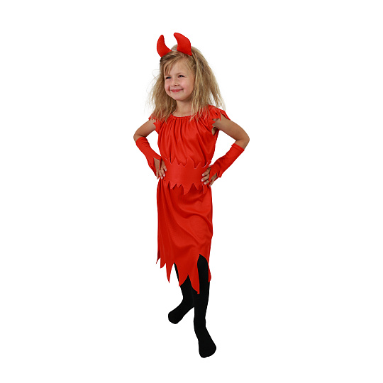 Pekelně červený karnevalový kostým s motivem čertice, ve velikosti S je určen pro holčičky ve věkovém rozmezí 4-6 let (105-116 cm). Balení obsahuje šaty, pásek, návleky na ruce a čelenku s rohy. Nejen letos je potřeba myslet EKO-nomicky i EKO-logicky! EKO-balení je vhodné zejména pro e-shopy kde zákazník nakupuje dle fotografie a není třeba velkého balení s věšákem. EKO-logicky – na balení bylo použito méně plastu a dalších materiálů. Jedná se o malý transparentní obal s fotografií. EKO-nomicky –EKO-obal zabere jen polovinu místa – šetřete skladová místa s námi!