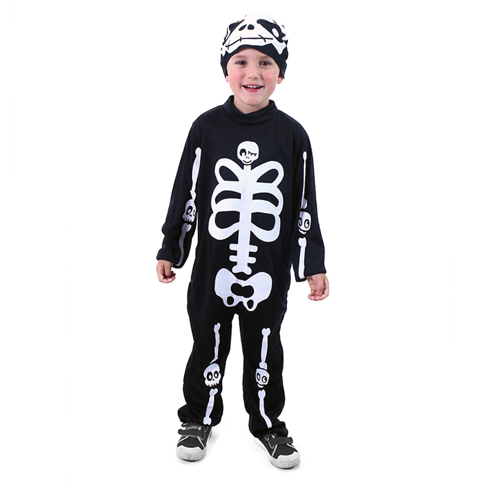 Strašidelný karnevalový kostým s motivem kostlivce! Kostým ve velikosti M je určen pro děti ve věkovém rozmezí 6-8 let (117-128 cm). Balení obsahuje černou kombinézu a masku s bílým potiskem kostry. Nejen letos je potřeba myslet EKO-nomicky i EKO-logicky! EKO-balení je vhodné zejména pro e-shopy kde zákazník nakupuje dle fotografie a není třeba velkého balení s věšákem. EKO-logicky – na balení bylo použito méně plastu a dalších materiálů. Jedná se o malý transparentní obal s fotografií. EKO-nomicky –EKO-obal zabere jen polovinu místa – šetřete skladová místa s námi!