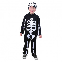 Strašidelný karnevalový kostým s motivem kostlivce! Kostým ve velikosti M je určen pro děti ve věkovém rozmezí 6-8 let (117-128 cm). Balení obsahuje černou kombinézu a masku s bílým potiskem kostry.