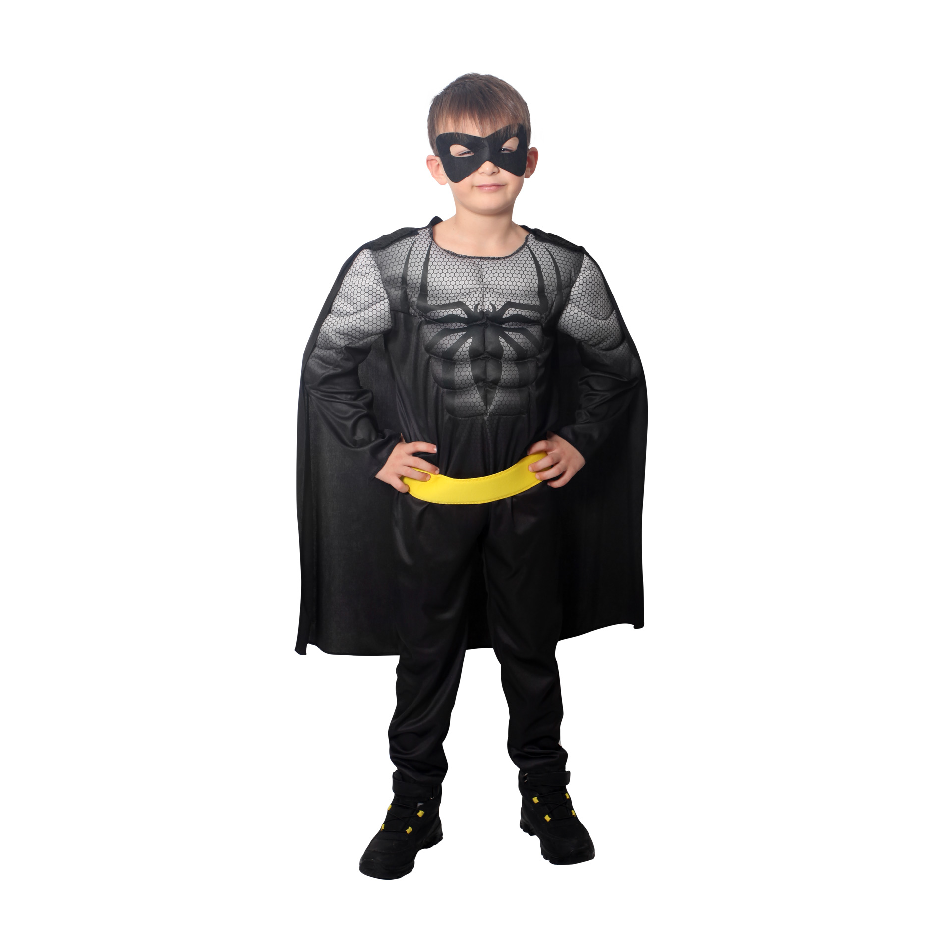 Úchvatný kostým ve stylu pavoučího bojovníka nesmí ve tvé karnevalové sbírce chybět! Kostým ve velikosti S je určen pro chlapečky ve věkovém rozmezí 4-6 let (105-116 cm). Balení obsahuje černo-šedý overal se znakem pavouka na hrudi a je doplněn černým odnímatelným pláštěm a látkovou škraboškou.