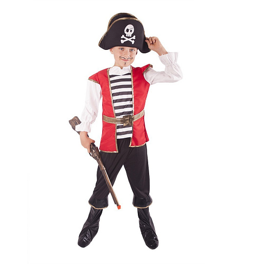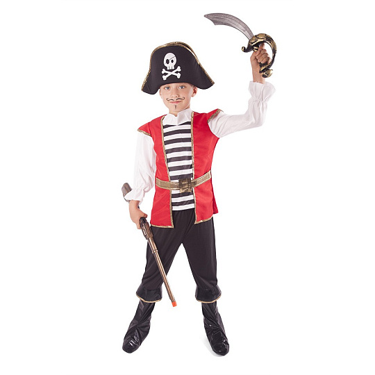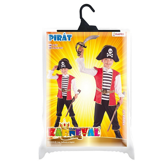 Chystáš se vyplout na pirátskou výpravu? Tak si pořiď ten správný kostým a vzhůru na palubu! Kostým, ve velikosti M je určen pro chlapce ve věkovém rozmezí 6-8 let. Balení obsahuje horní díl, kalhoty s návleky na boty a stylovou pirátskou čepici.