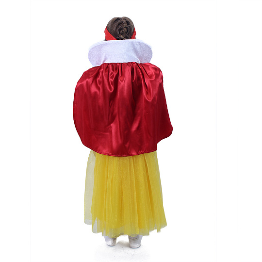 Proměň se během chvilky v půvabnou Sněhurku! Kostýmek o velikosti M je určen pro holčičky ve věkovém rozmezí 6-8 let (117-128 cm). Barevný kostým je dekorován v přední části modrými flitry a zlatým zdobením. Součástí je odnímatelný červený plášť s bílým límcem. Neobsahuje mašli do vlasů.