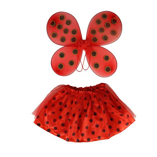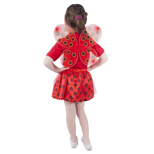 Proměň se na berušku díky tomuto roztomilému kostýmu! Kostýmek červené barvy je určen pro holčičky ve věkovém rozmezí 3-7let. Balení obsahuje sukničku zdobenou puntíky a perfektně sladěná křídla. Sukýnka, která je v pase na gumičku je dlouhá cca 30 cm.