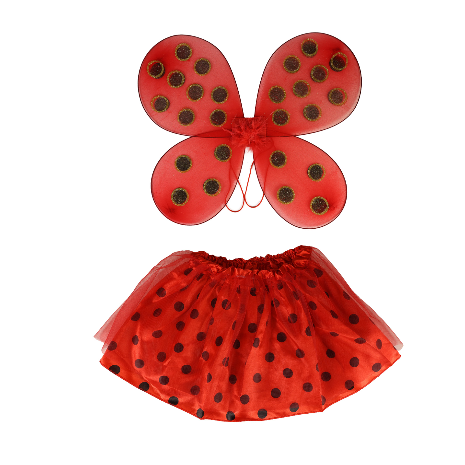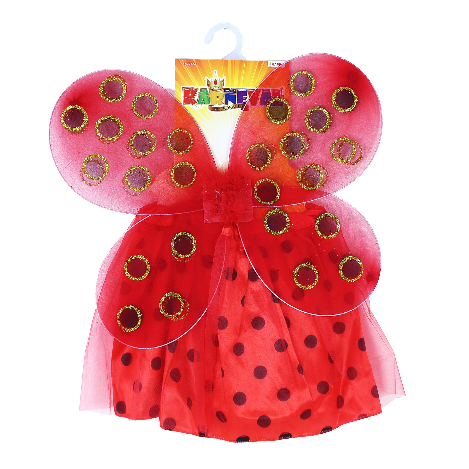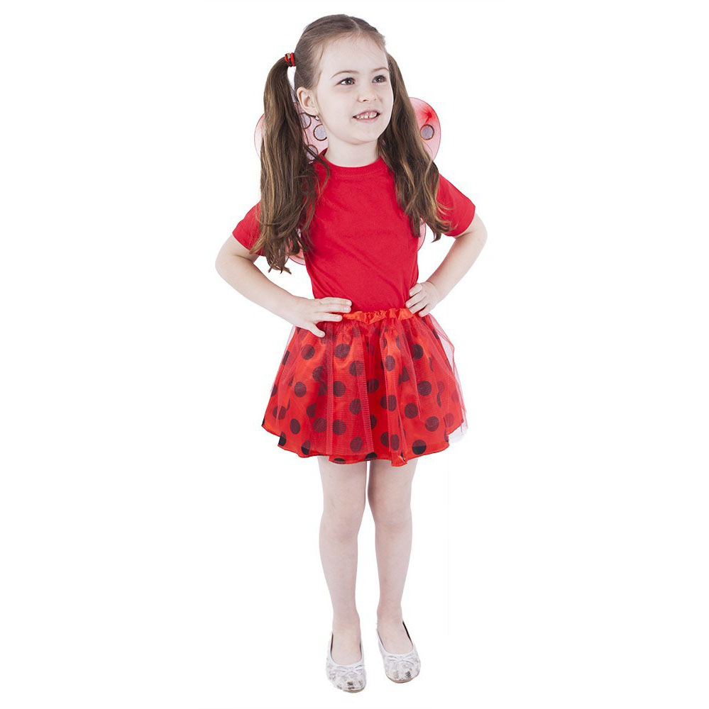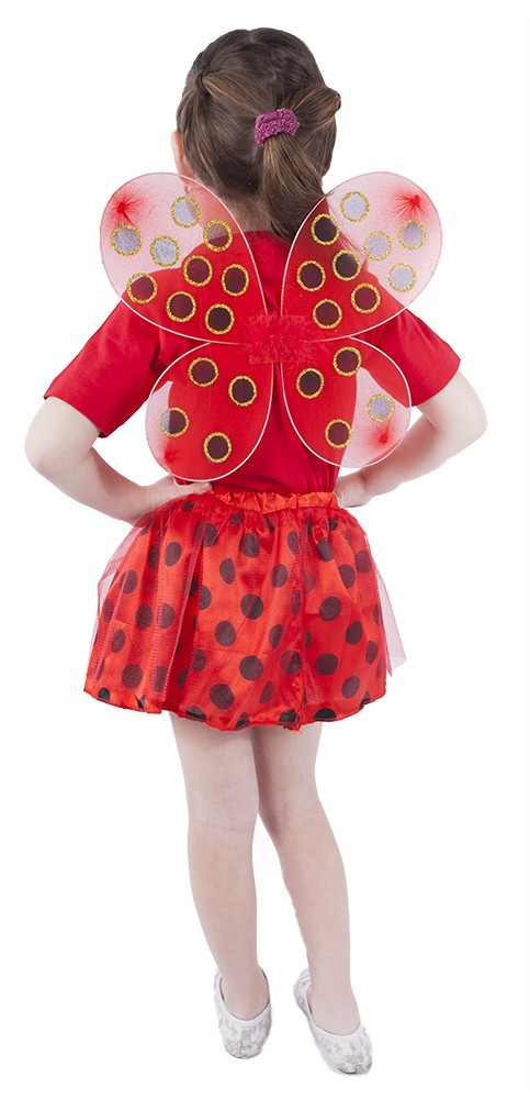 Proměň se na berušku díky tomuto roztomilému kostýmu! Kostýmek červené barvy je určen pro holčičky ve věkovém rozmezí 3-7let. Balení obsahuje sukničku zdobenou puntíky a perfektně sladěná křídla. Sukýnka, která je v pase na gumičku je dlouhá cca 30 cm.