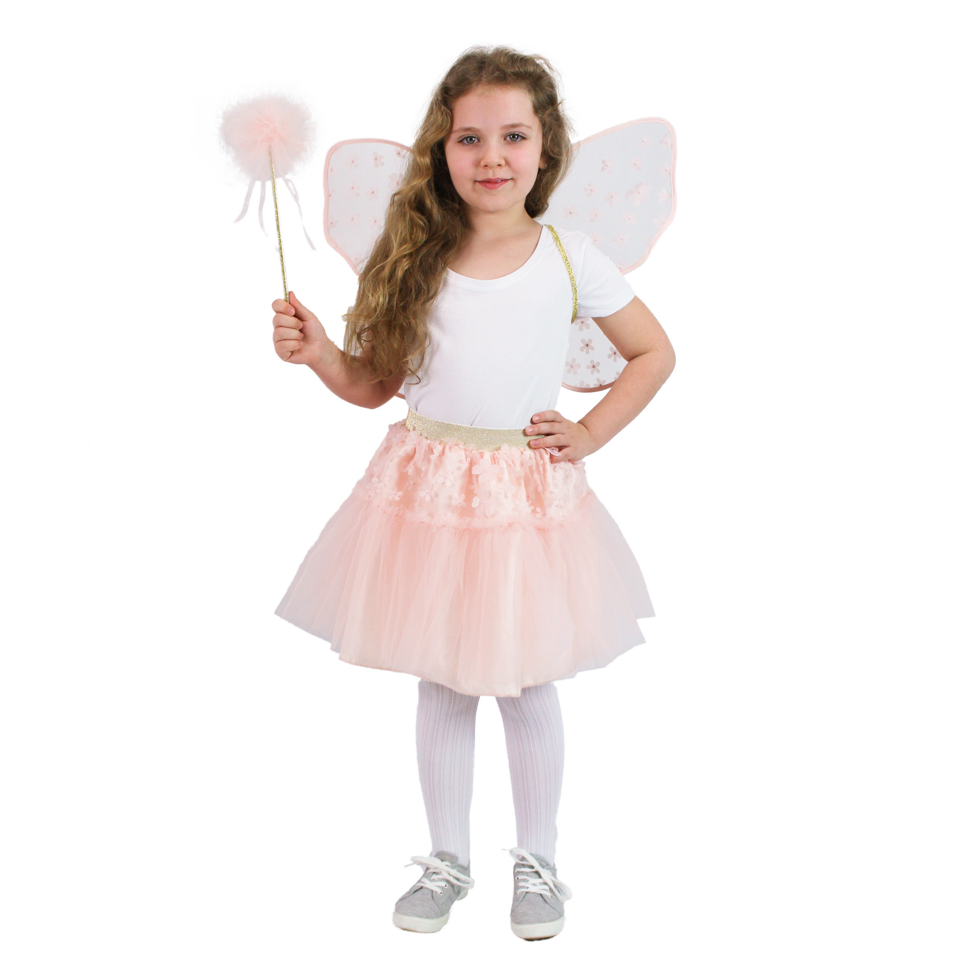 Rappa Dětský kostým tutu sukně růžová květinová víla s hůlkou a křídly