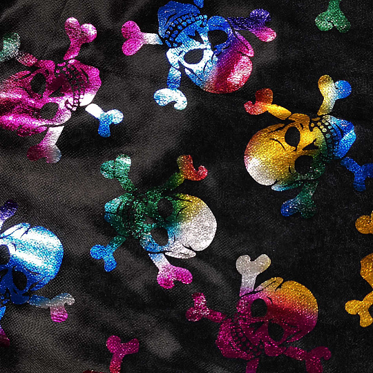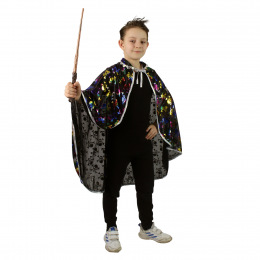 Senzační plášť pro všechny čarodějnice a čaroděje! Plášť na zavazování je určen pro děti od 3 do 7 let. Tento stylový kousek má límeček a je dekorován balevným metalickým potiskem lebek. Vhodný i na oslavu Halloweenu.