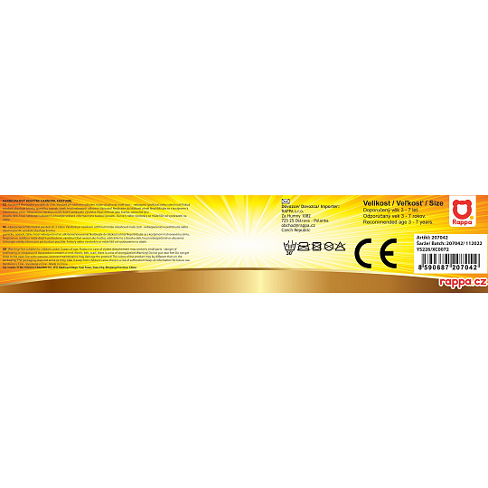 Karnevalový plášť čerta v červeno-černé barvě a v univerzální velikosti je určen pro děti ve věkovém rozmezí 3-10 let (104-146 cm). Balení obsahuje plášť s kapucí, na které jsou přišity rohy. Délka pláště je cca 104 cm.