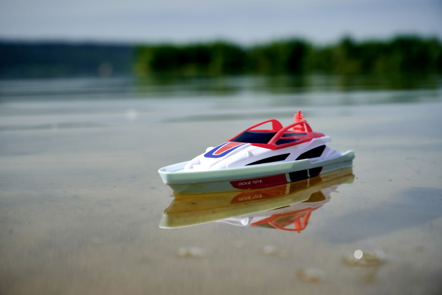 Loď na dálkové ovládání, 2 kanály. Vodotěsný ovladač. Zvýšení rychlosti. Max. rychlost 2 km/h. Frekvence 2.4 GHz. Měřítko 1:48. Délka 34 cm.